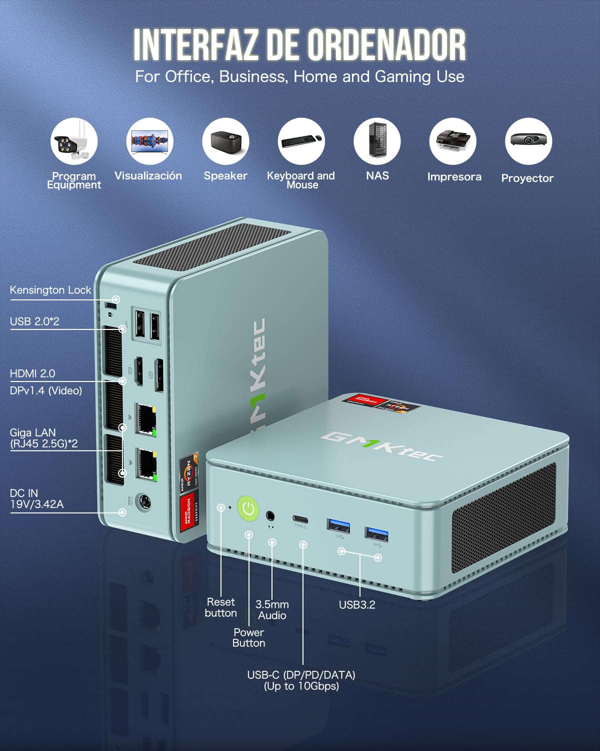 Gmktec Gaming Pc Mini Amd R7 5700U(Turbo 4.3Ghz), Dual Lan 2.5G Desktop Computer Mini 16Gb Ddr4 512Gb Ssd Windows 11 Pro Wifi 6E, Usb3.2, Usb-C, Bt 5.2, Dp, Hdmi, Dual Fan