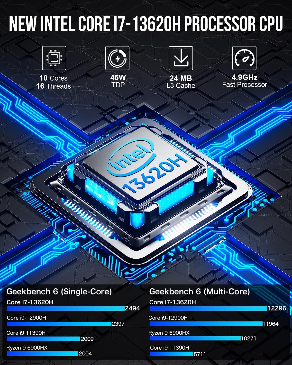 Gmktec Mini Pc, K7 Plus 13Th Intel Core I7 13620H (10C/16T, Up To 4.9Ghz), 32Gb Ddr5 Ram (16Gb*2)/1Tb Pcie Gen4 Ssd Mini Desktop