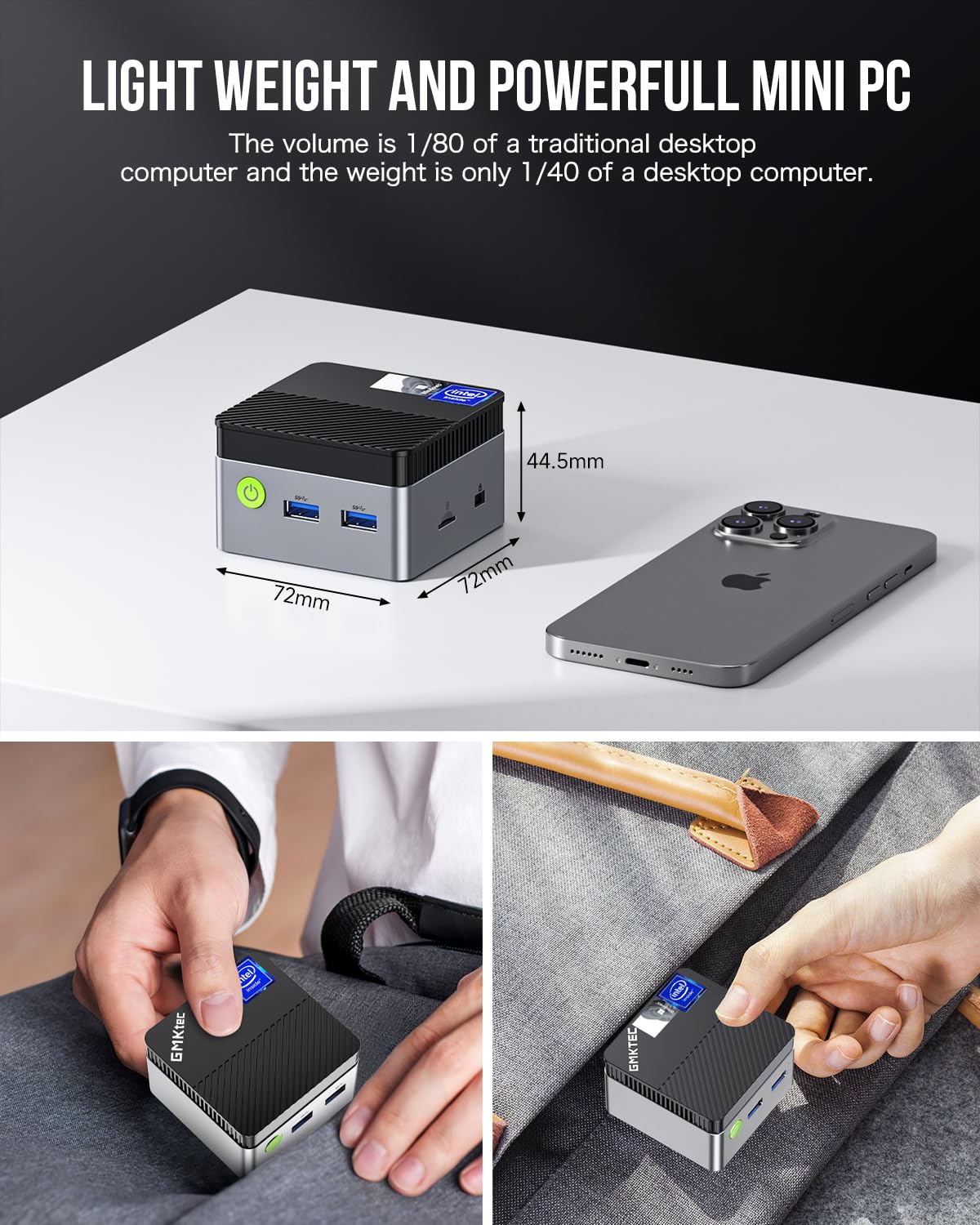 Highly Efficient Cooling Fan System Windows 11 Pro Mini Pc Gmktec Nucbox G5 Built-In Silent Cooling Fan System, High Speed Cooling And Stably Achieves Working Or Creative Running Smoothly. The Mini Computer Desktop Will Play A Great Role In Working Due To Without Noise Design. 12Gb Ram+256Gb M.2 Ssd Gmktec G5 Mini Desktop Pc Features The Latest Lpddr5 With A Frequency Of 4800Mh. 12Th Gen Intel Alder Lake N97 Mini Pc Is 4 Core 4 Threads, 6Mb Cache, The Base Frequency Burst Speed Up To 3.6Ghz. Built-In 12Gb Lpddr5 Ram, 256Gb M.2 2242 Sata Ssd, Also Can Be Upgrade Max To 2 Tb. Pre-Install Windows 11 Pro, Support Microsd Max To 256Gb. Powerful Intel Alder Lake N97 Processor Gmktec Mini Desktop Computer Is Powered By A Faster 12 Generation Intel Alder Lake N97 Processor. The Performance Of Intel Alder Lake N97 Mini Pc (7Nm) Is Better Than N100/N5105/N5095. Small Computer Make Your Desk Into A More Powerful Workstation. A Reliable And Stable Mini Computer Can Keep Up With Your Everyday Tasks And Daily Life. More Functions & Gmktec Service Gmktec Mini Pc Desktop Also Supports Linux&Ubuntu, Auto Power On, S5 Rtc Wake, Pxe Boot And Wol. All Our Products Are Ce-/Fcc-/Rohs Certified For Safety And High Performance! Micro Desktop Computer Comes With Lifetime Technical Support, 1 Year Warrenty 7Days-24 Hours Service. Package Contents 1 Gmktec Nucbox G5 Mini Pc 1 Power Adapter 1 User Manual