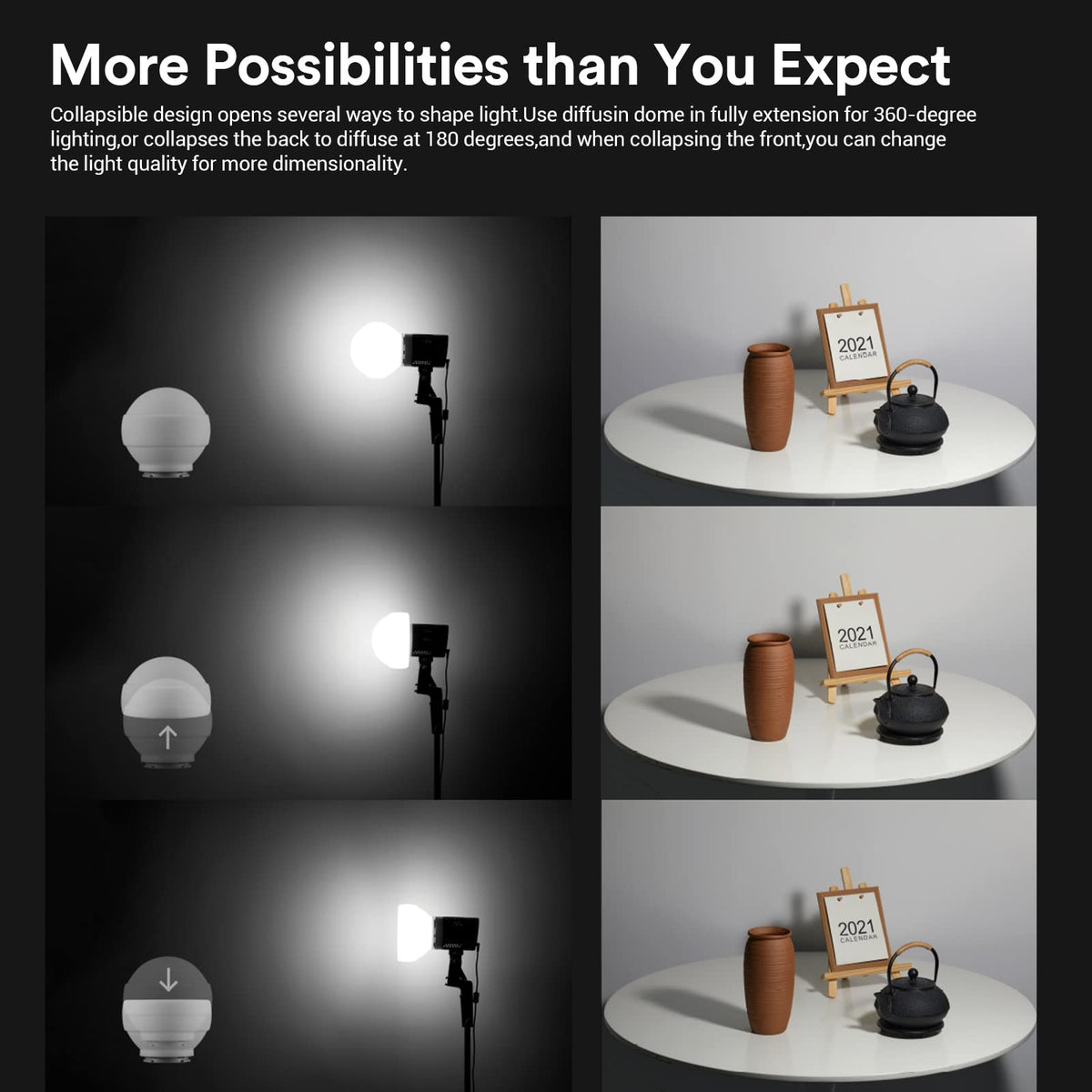 Packaging Included: Diffusion Dome *1 Godox Mount Adapter*1 Round Head Adapter*1 Rectangle To Round Head Adapter*1