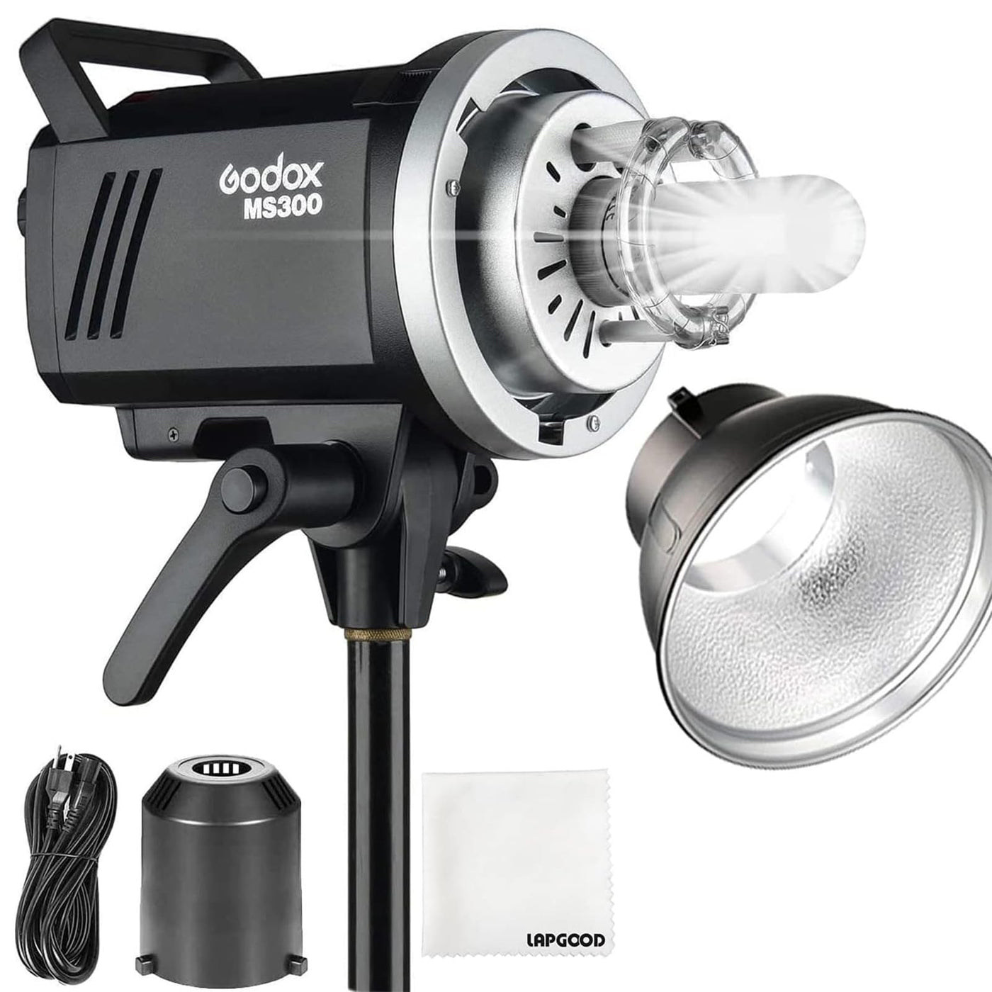 Specifications: Model: Ms300 Max Power: 300Ws Guide Number(M Iso 100): 58 (With Highly Effective Reflector) Color Temperature: 5600200K Operating Voltage: Ac110V-120V(60Hz) Power Output: 1/32-1/1(5.0-10.0) Power Consumption Of Modeling Lamp: 150W Light Brightness Of Modeling Lamp: 5%-100% Recycle Time: 110V(0.1-1.8S) Flash Duration: 1/2000-1/800S Fuse: F8Al 250V Dimension: Flash Diameterf12.6Cm. Height Of Flash With Handle 16.7Cm. Length Of Flash With Lamp Cover 28.3Cm New Weight: Approx. 2.6Kg Items Included: 1 X Ms300 Flash 1 X Ad-R6 Standard Reflector 1 X Power Supply Cord 1 X Lamp Cover 1 X Modeling Lamp 1 X Instruction Manual 1 X Cleaning Cloth