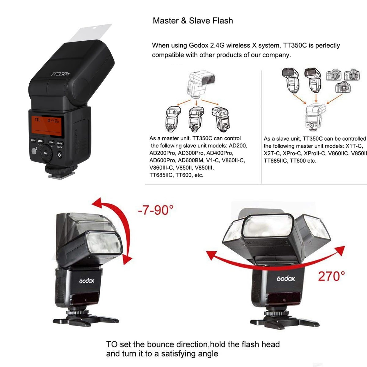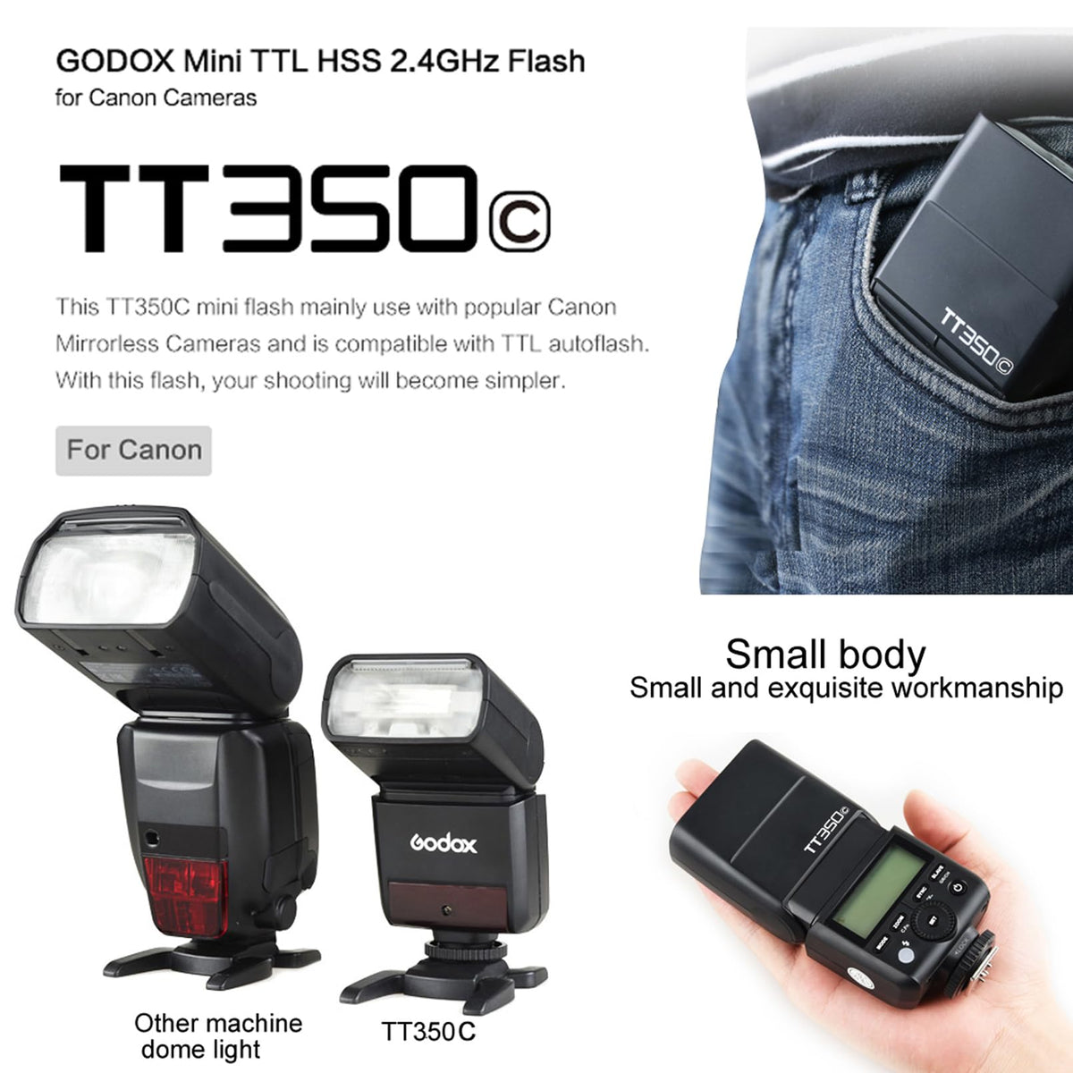 Godox Tt350C Flash For Canon Camera, 2.4G Wireless Speedlight Canon Gn36 1/8000S Hss Speedlite, Mini Thinklite Ttl Camera Flash