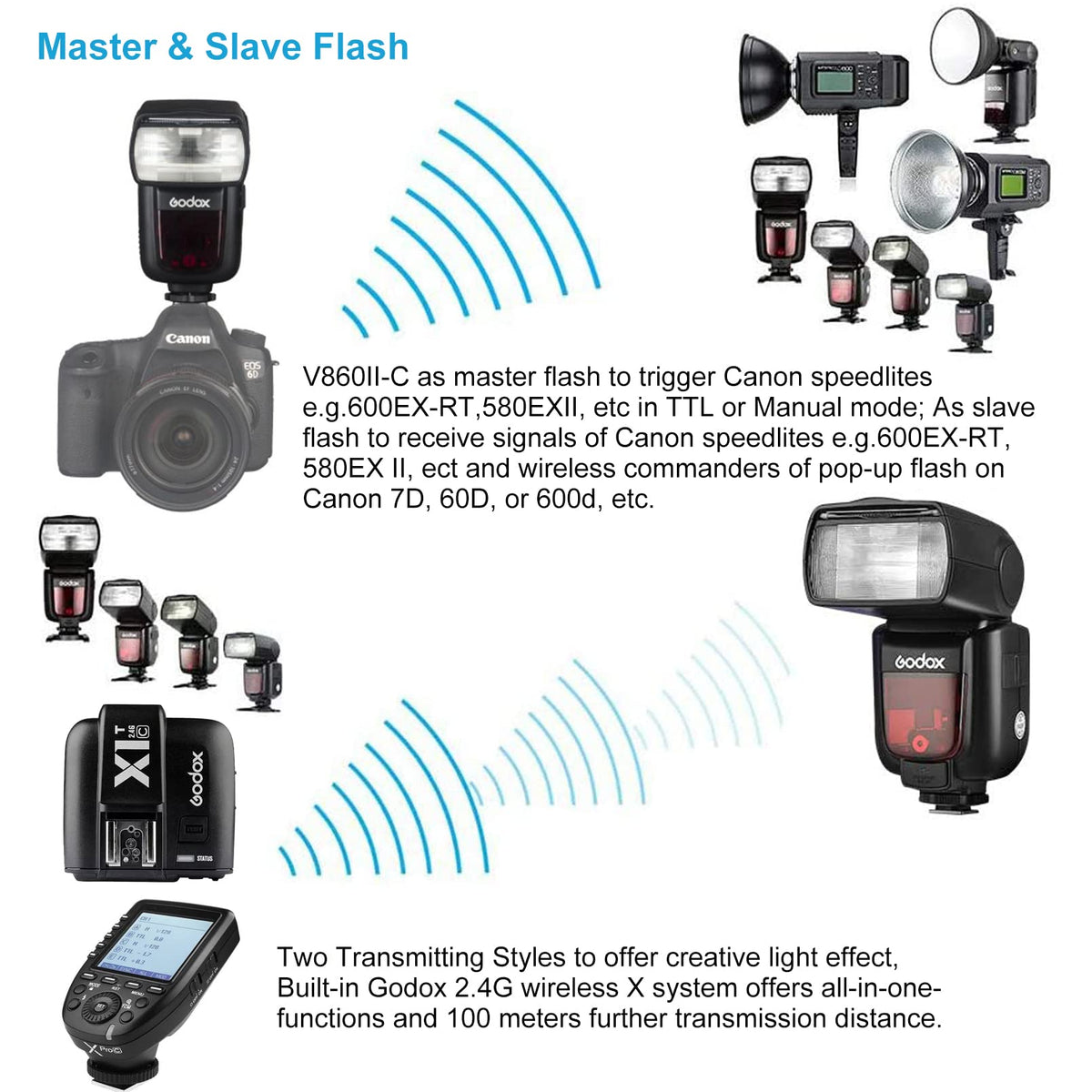 Godox V860Ii-C V860Iic Camera Flash Speedlite For Canon, 2.4G Ttl Flash Speedlight Gn60 1/8000S Hss, Rechargable Li-Ion Battery,