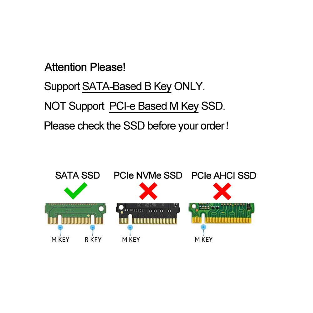 Features: M.2(Ngff) Sata Key B+M Ssd To 2010-2011 Macbook Air Adapter Card Is Used To Allow M.2 Ngff Ssd To Replace Ssd Of 2010-2011 Macbook Air A1369 A1370 1375 A1377 Mc505 Mc506. 1. Can Replace The Following Ssd Modules From 2010-2011 Macbook Air A1369 A1370 1375 A1377 Mc505 Mc506: Ssd: To-Shiba Thnsnc128Gmdj,Toshiba Thnsnc256Gmdj, Sam-Sung Mz- Cpa0640/0A2(64Gb),Sam-Sung Mz-Cpa1280/0A2(128Gb) ,Sam-Sung Mz- Cpa2560/0A5(256Gb) 2. Size Is Same As 2010-2011 Air Ssd: 109Mmx24Mm. 3. Plug And Play,No Need Drivers . 4. The Storage Space Is Optional,Support 4 Sizes: Type 2230,2242,2260,2280. 5. No Extra Power Supply Required.