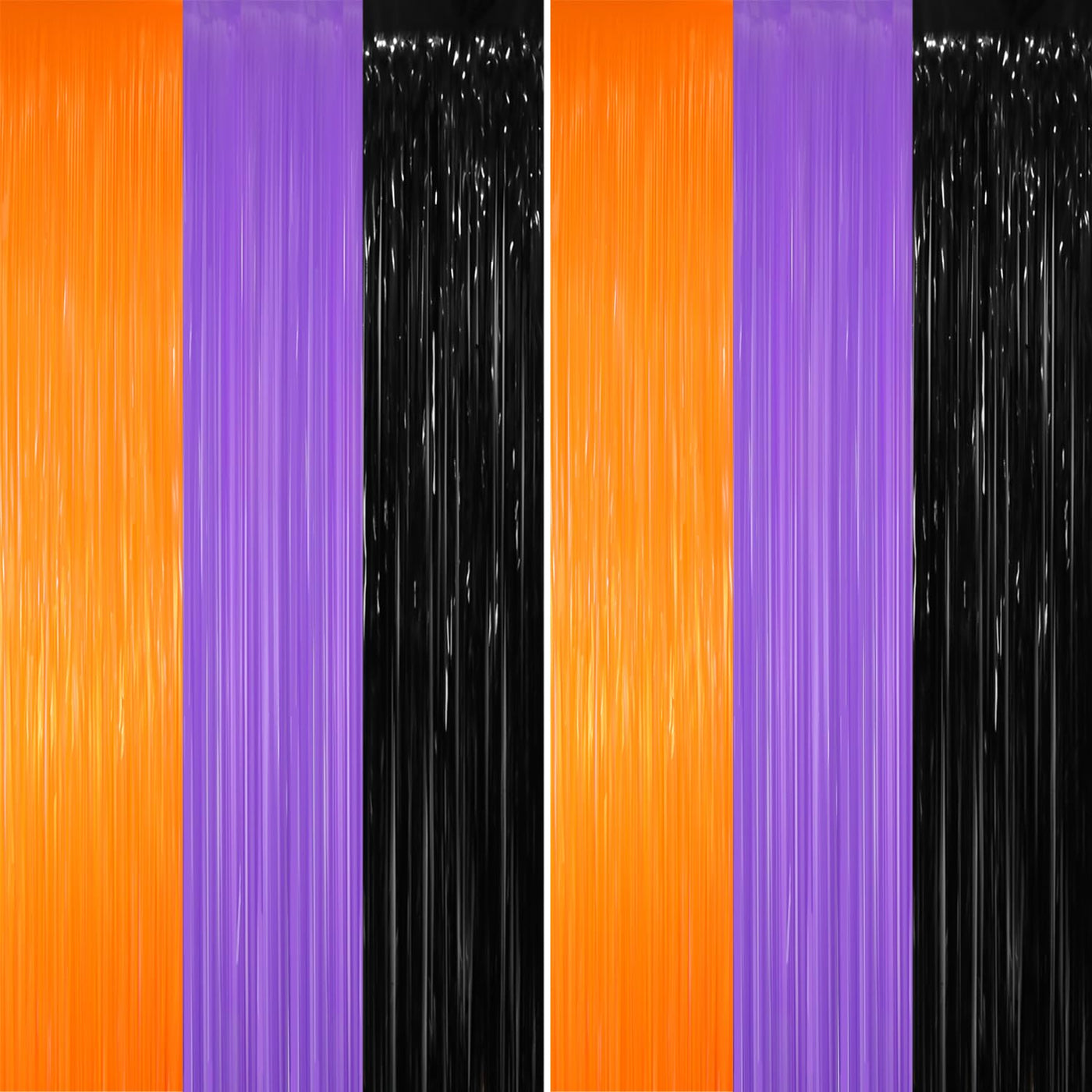 Material:Food Packaging Level Mylar,Can Be Reused | Package Includes:2 Packs Black&Orange&Purple Foil Fringe Party Backdrop | Size:3.2 Ft X8.2 Ft Each,Suitable For Hanging On A Door | Easy To Use,The Foil Fringe Party Backdrop Comes With Adhesive Tape On The Top And Is Ready To Use After Opening The Package | Perfect As A Party Backdrop For Halloween,Thanksgiving,Birthday,Bachelorette,Wedding,Graduations,Christmas,New Year Eve And More