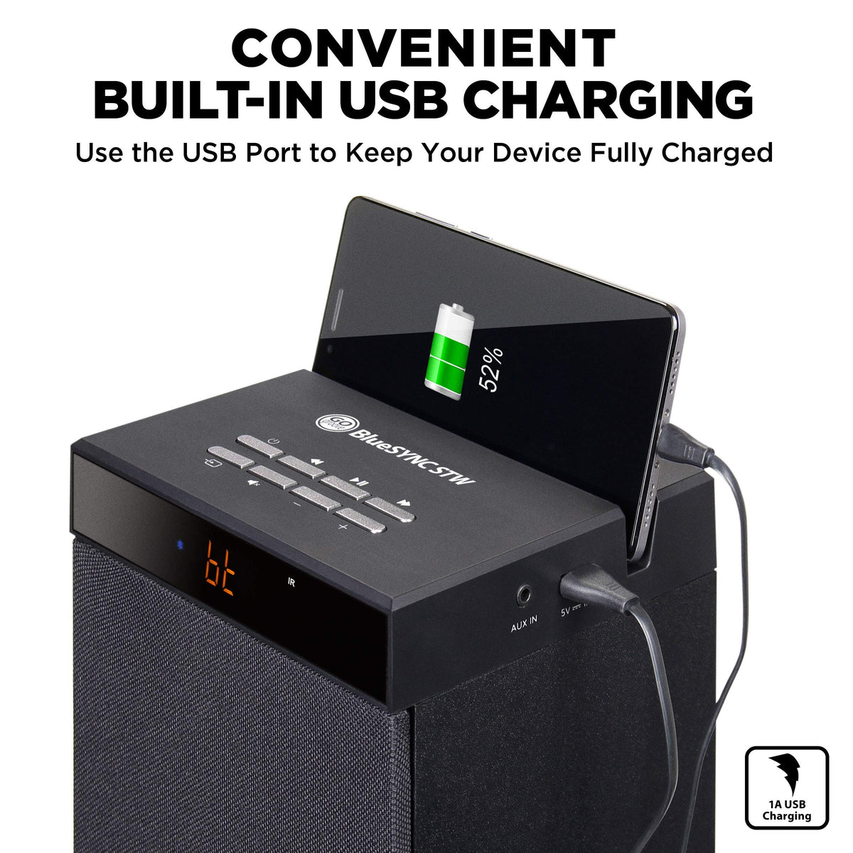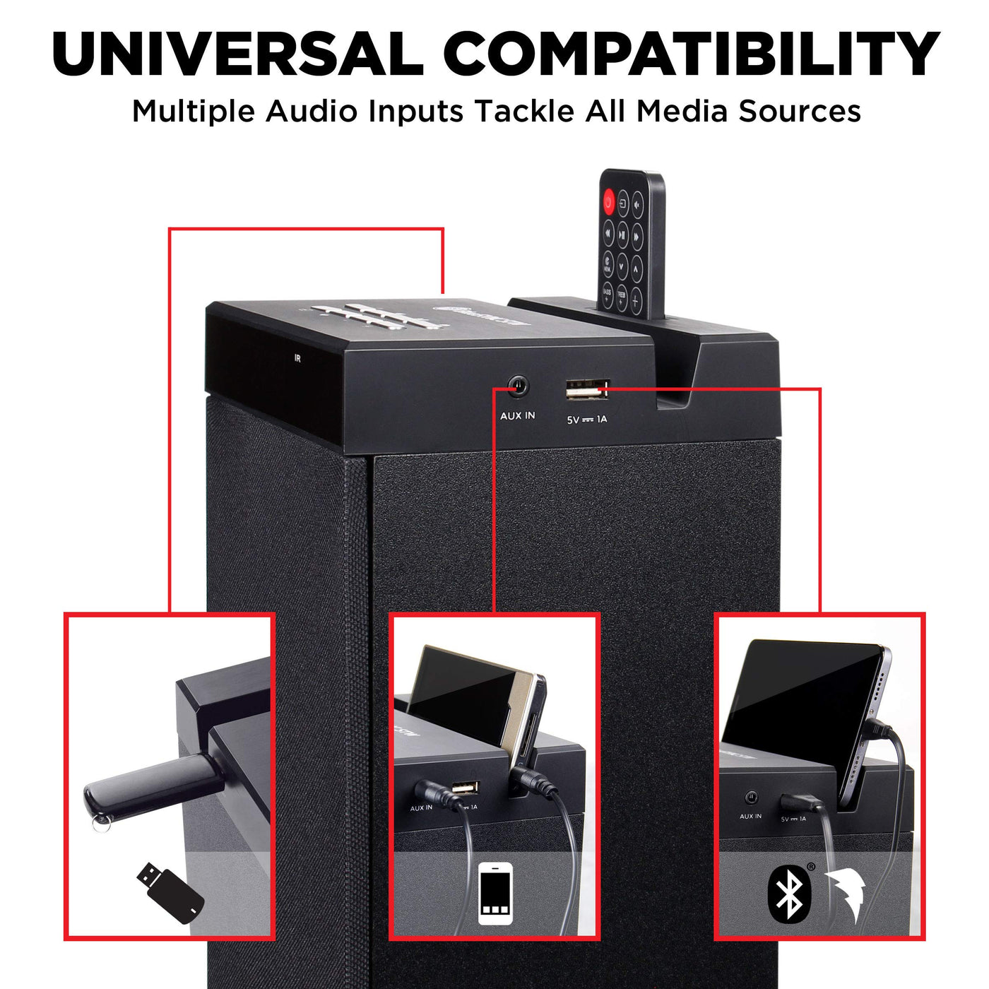 Gogroove Bluetooth Tower Speaker With Subwoofer Built In Floorstanding Home Speaker With Powerful Bass And Dual Drivers, 120W