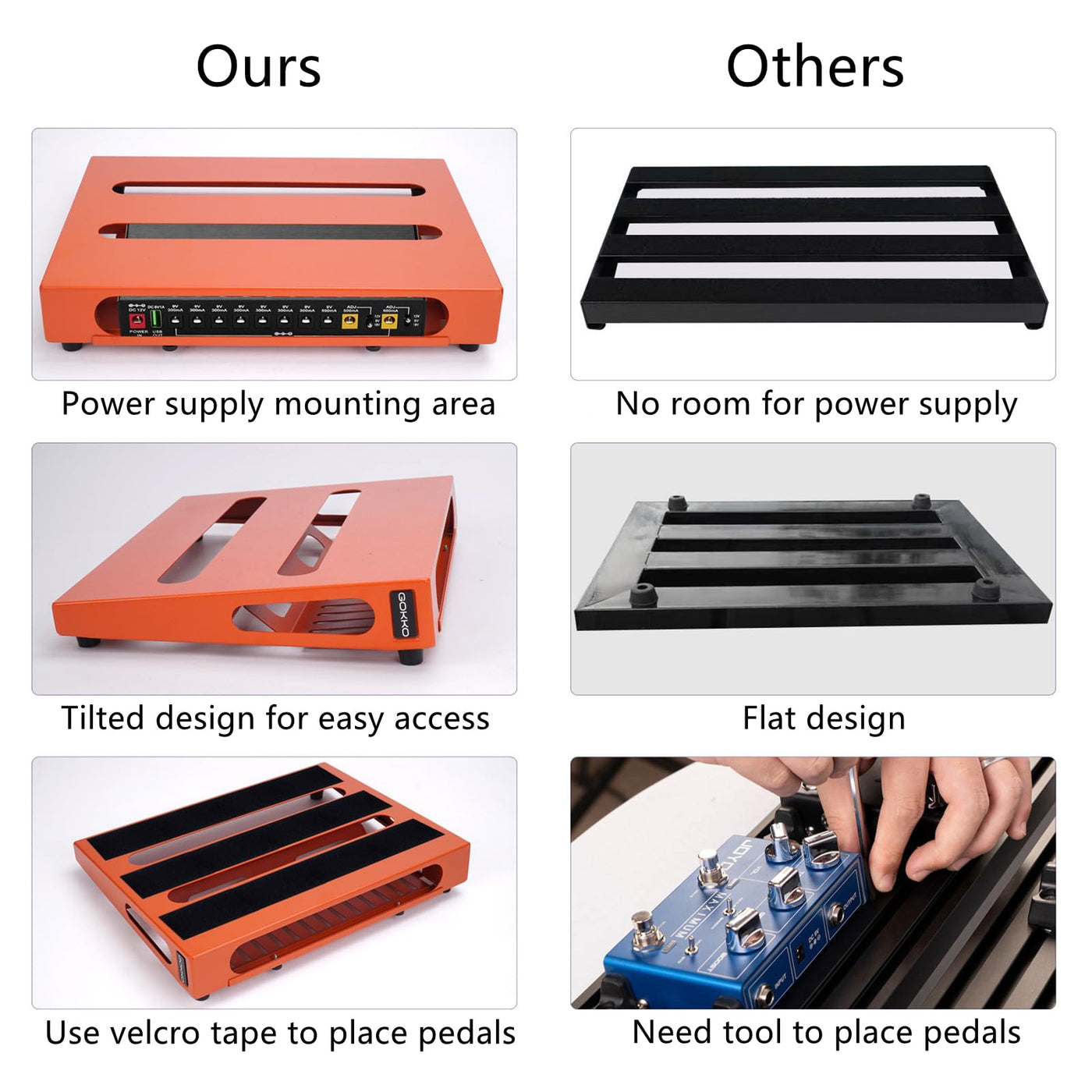Gokko Guitar Pedal Board 13.8 X 11 With Carrying Bag, Built-In Power Supply Mounting Plate (Vibrant Orange)