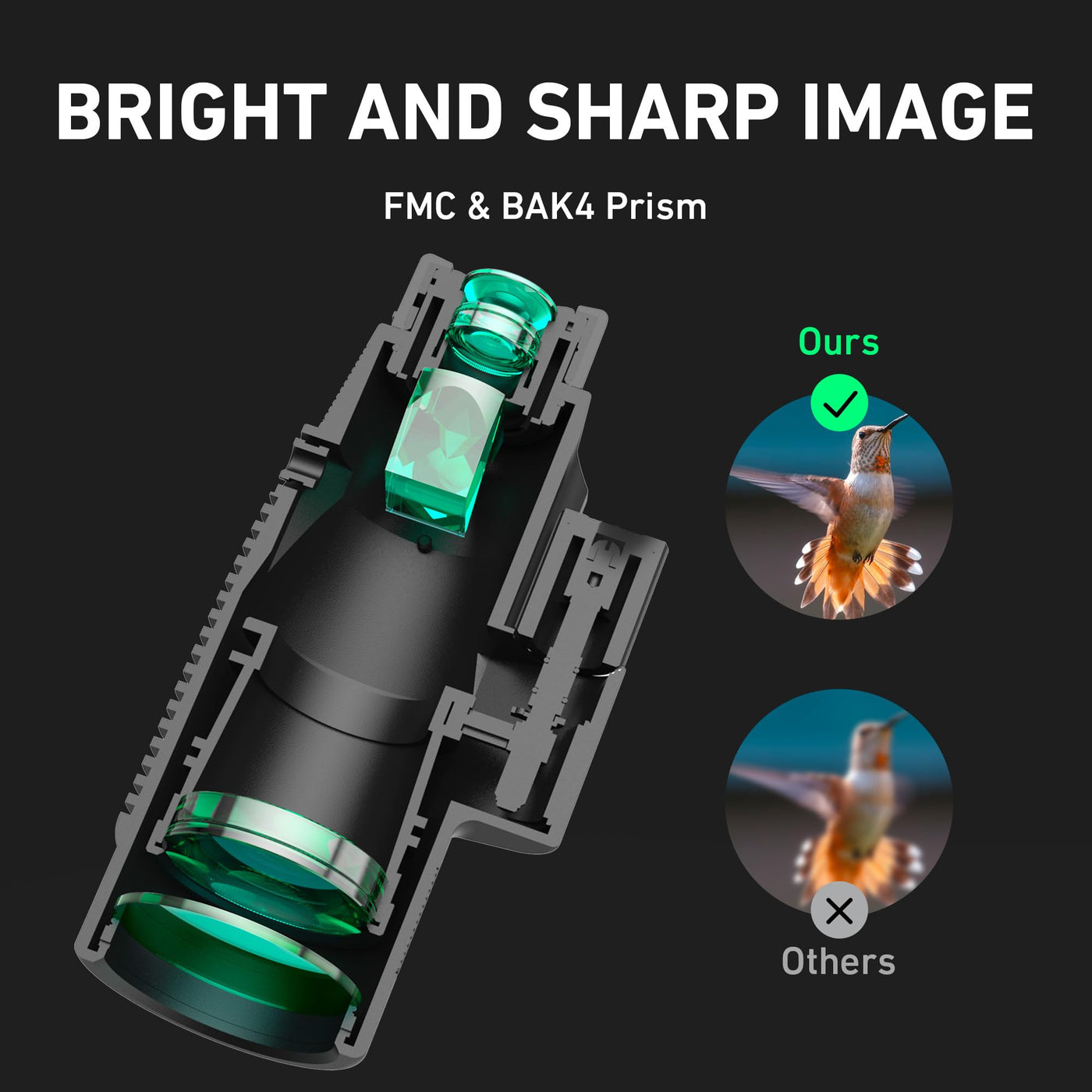 Q: How does the BAK4 prism benefit the viewing experience?A: The BAK4 prism in the Gosky Monocular enhances light transmission, resulting in clearer and brighter images, which is essential for observing details in distant subjects.