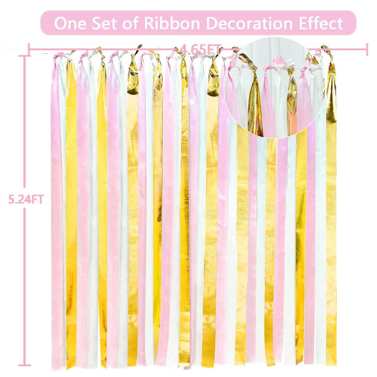 Gold Pink And White Party Decoration Streamer Backdrop 197 Ft 1.97'' Wide Satin Ribbon Fringe Hanging Garland For Birthday Baby
