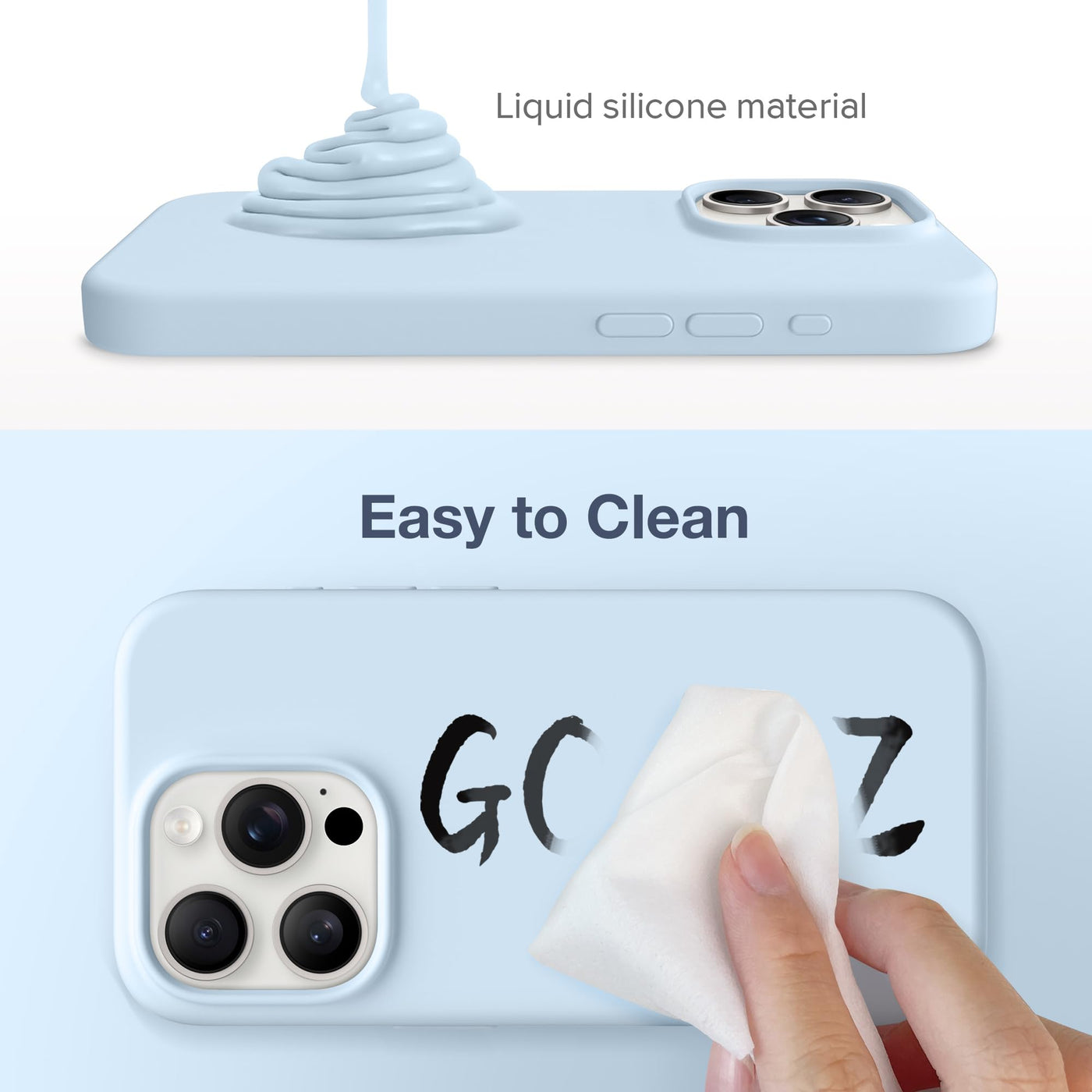 Q: What materials are used in the GONEZ iPhone 15 Pro Max case?A: The GONEZ case is made from high-quality liquid silicone for a soft touch, complemented by a polycarbonate hard back cover and a soft microfiber lining to prevent scratches on your phone.