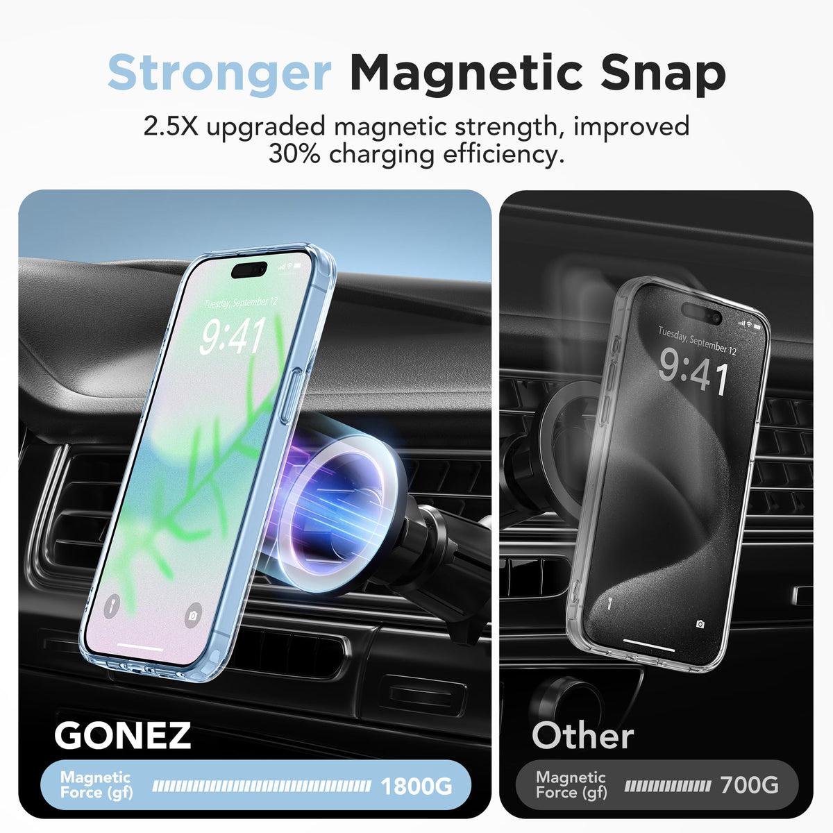 Q: Is the GONEZ Magnetic case compatible with MagSafe accessories?A: Yes, the GONEZ Magnetic case is designed with a built-in magnetic ring and 48 strong N52 magnets that ensure it is fully compatible with MagSafe accessories, providing secure attachment and reliable performance.