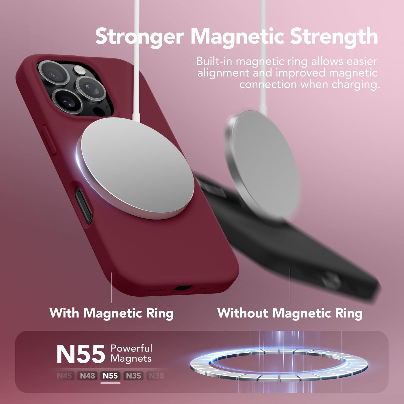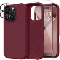 Gonez Magnetic For Iphone 16 Pro Case, Compatible With Magsafe, [2 Screen Protector + 2 Camera Lens Protector], Silicone Shockproof Anti-Scratch Protective Phone Case 6.3 Inch, Maroon