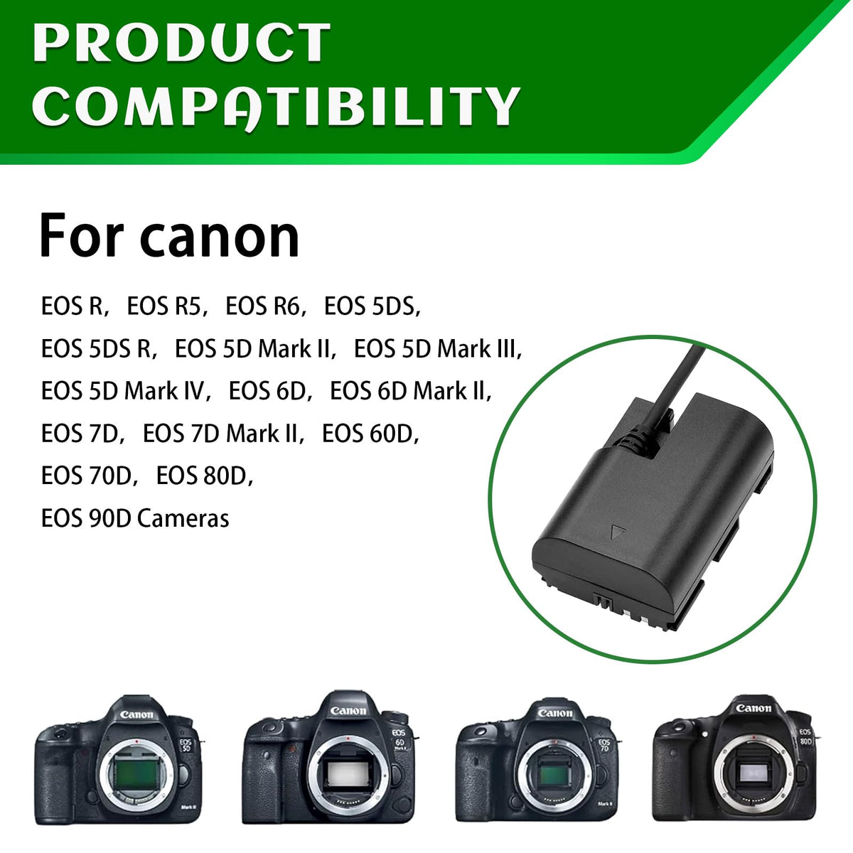 The Gonine Ack-E6 Camera Ac Power Adapter Lp-E6 Dummy Battery Kit Compatible With: For Canon Eos R, R5, R6, R7, R5C. For Canon Eos 90D, 80D, 70D, 60D, 60Da. For Canon Eos 6D, 6D Mark Ii. For Canon Eos 7D, 7D Mark Ii. For Canon Eos 5D Mark Ii, 5D Mark Iii, 5D Mark Iv. For Canon 5Ds, 5Ds-R.