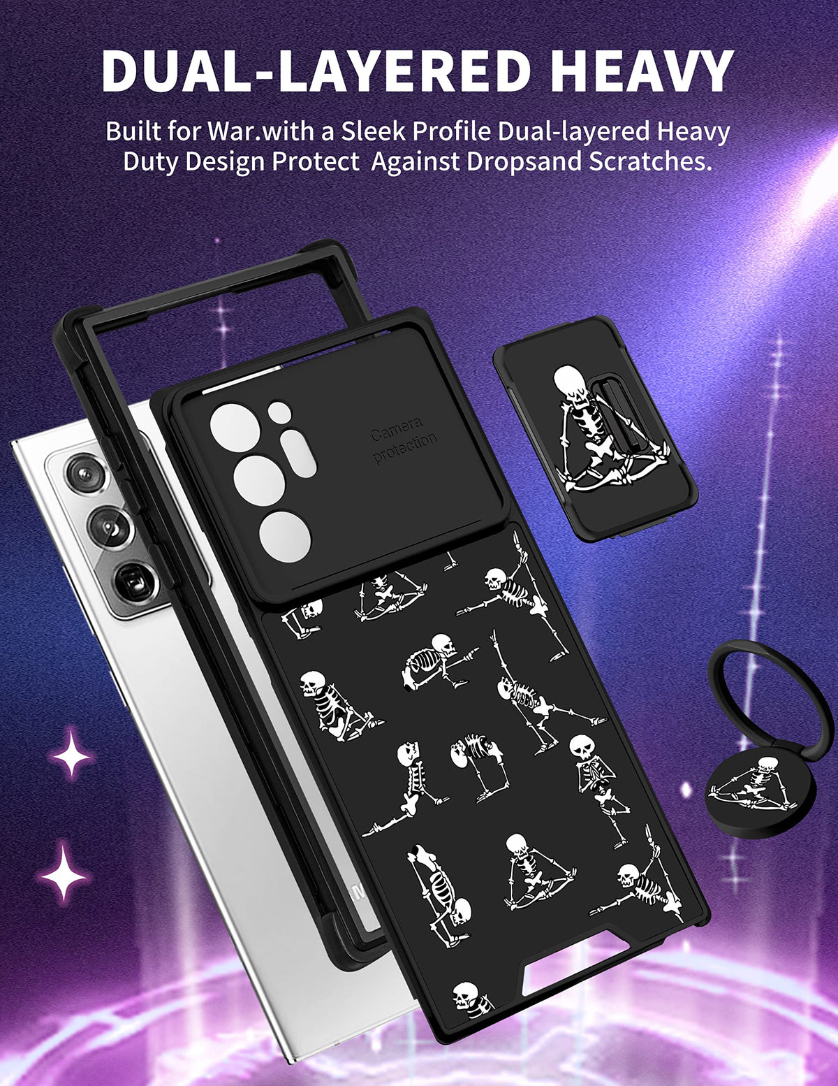 Goocrux (2In1 For Samsung Galaxy Note 20 Ultra Case Skull Cute Phone Cover Skeleton Yoga Ghost Horror Design With Slide Camera C