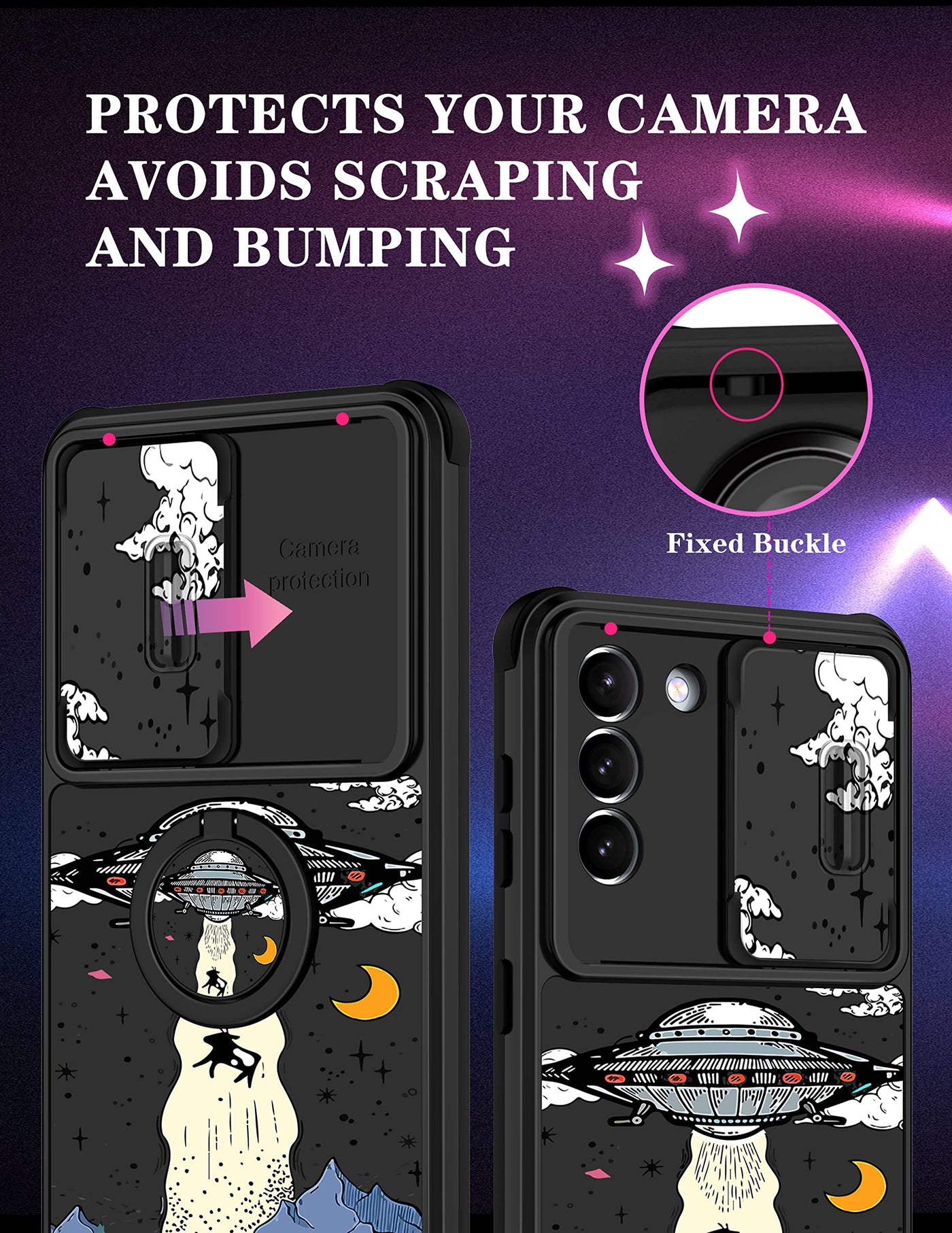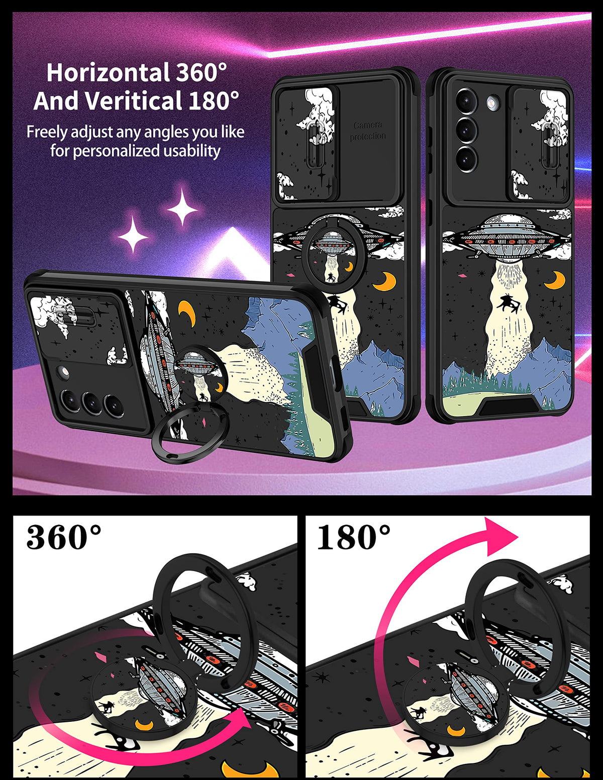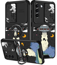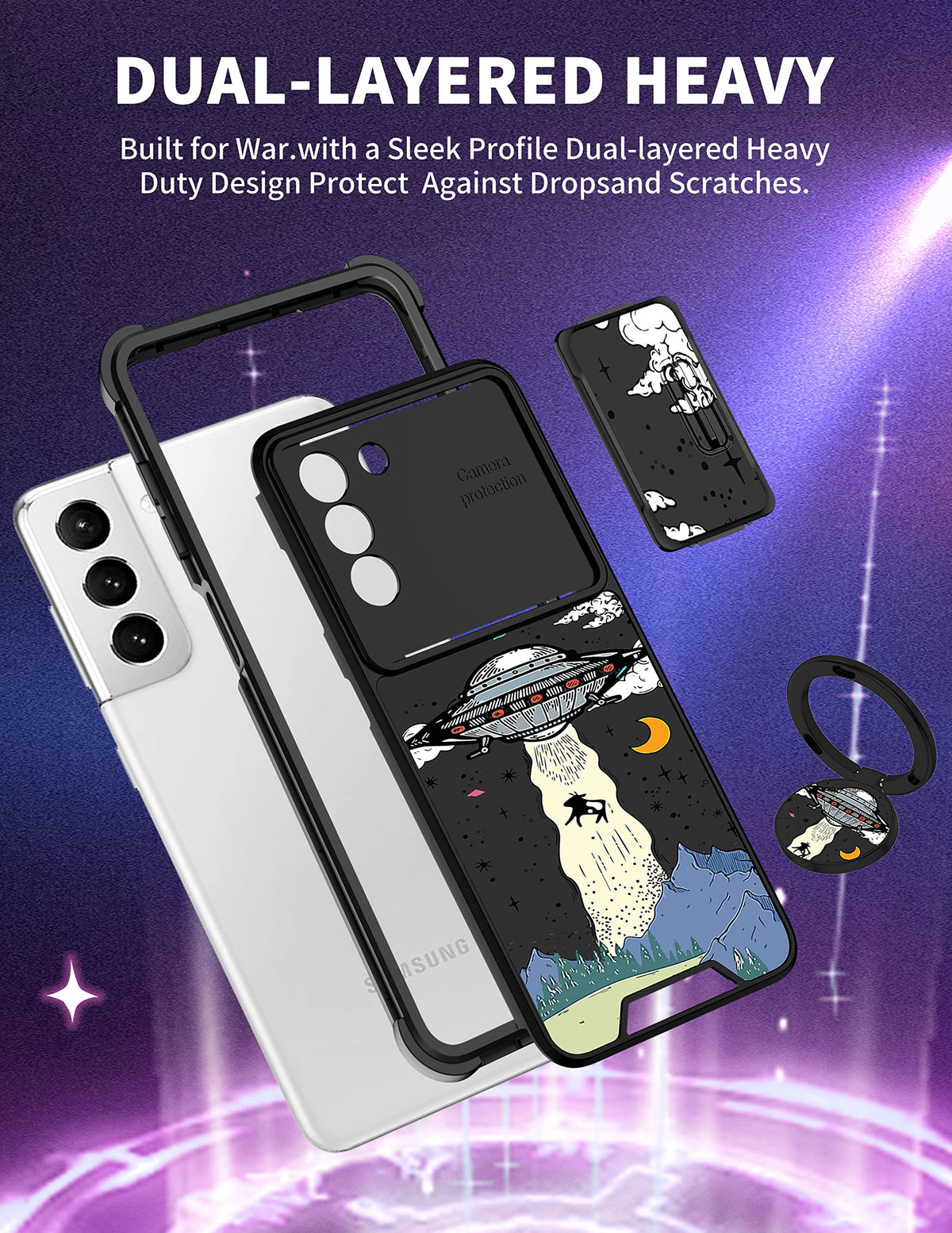 Goocrux (2In1 For Samsung Galaxy S21 Case For Women Girls Cute Ufo Phone Cover Cool Aliens Universe Pattern Design With Slide Ca