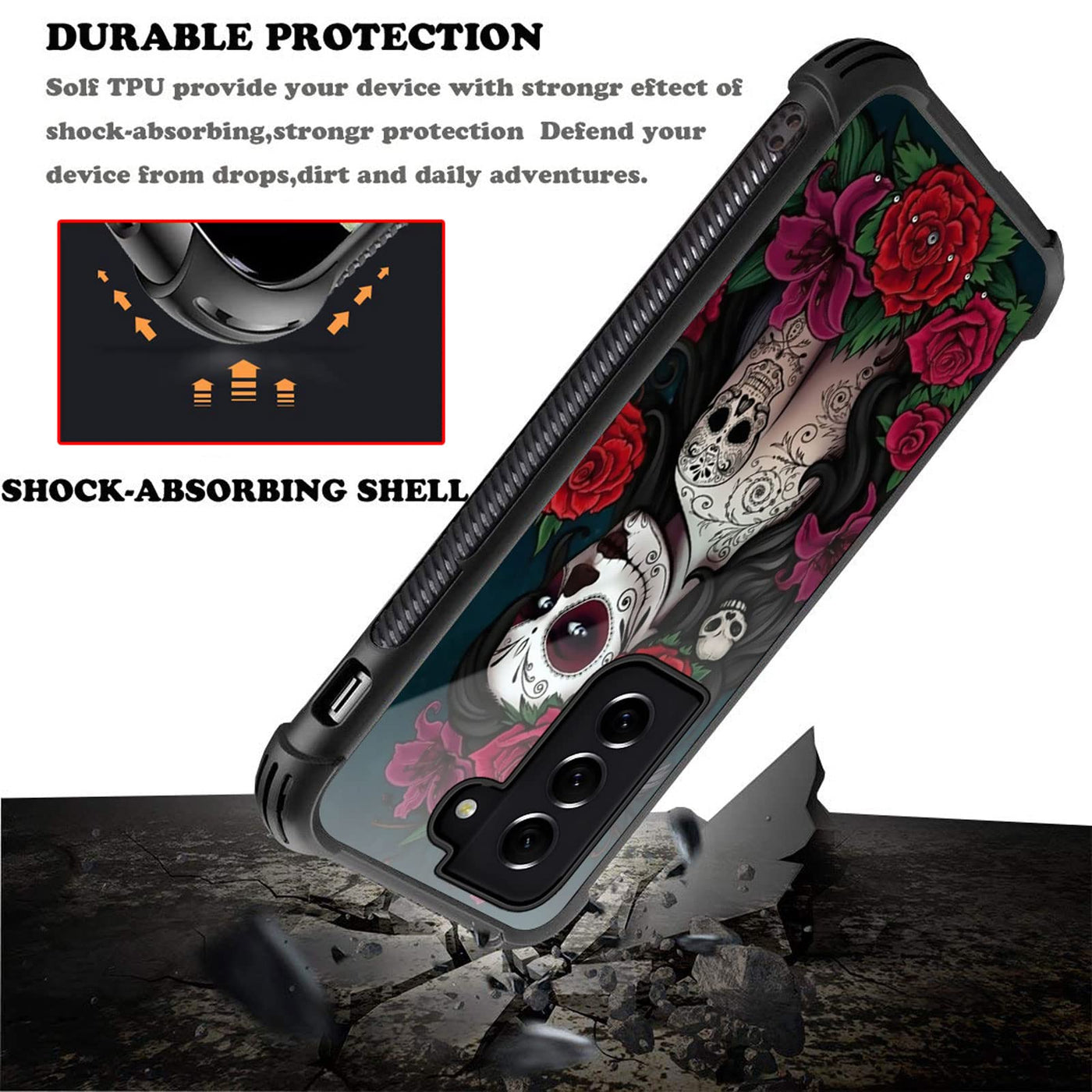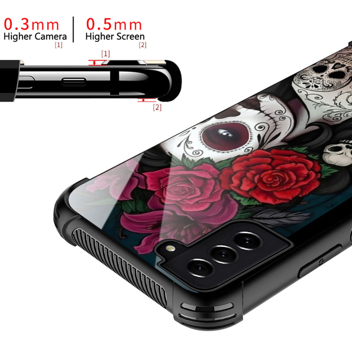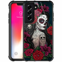 Goodsprout Compatible With Samsung Galaxy S21 Case,Lady Rose Skull Amazing Pattern Design Shockproof Anti Scratch Hard Pc Back C