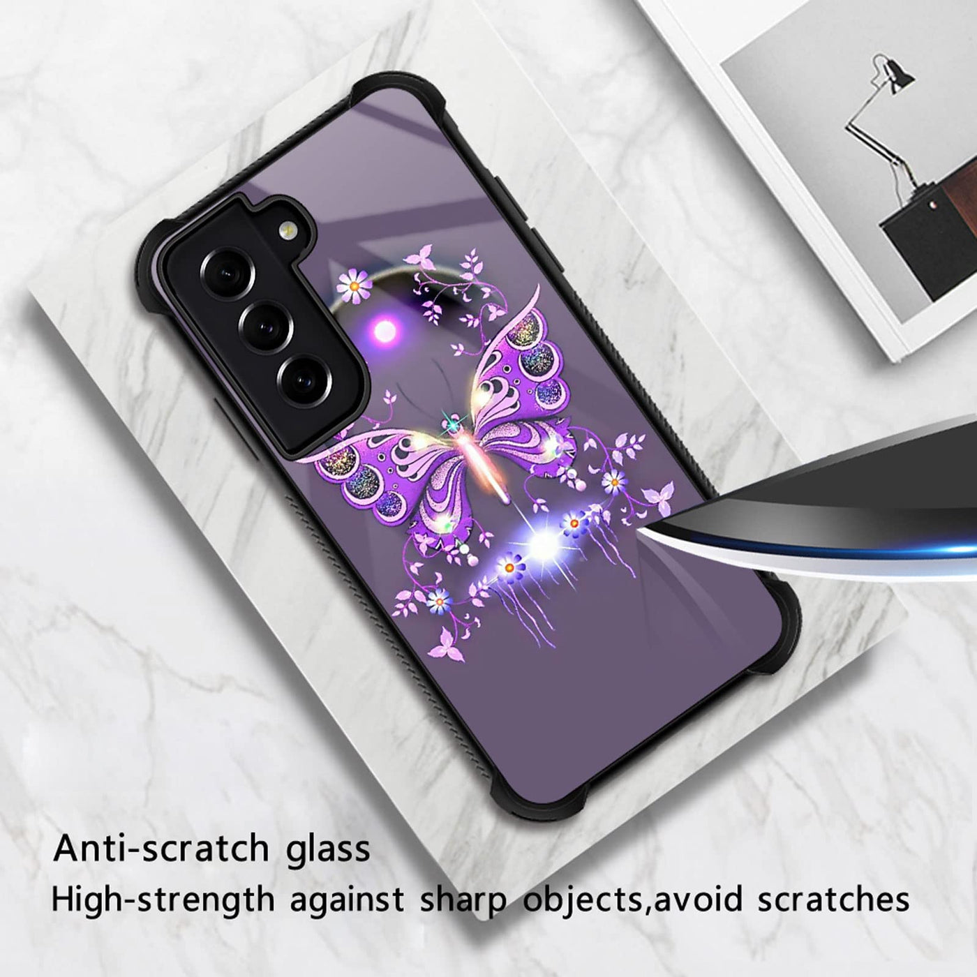 Goodsprout Compatible With Samsung Galaxy S22 Plus Case,Purple Butterfly Amazing Pattern Design Shockproof Anti Scratch Hard Pc