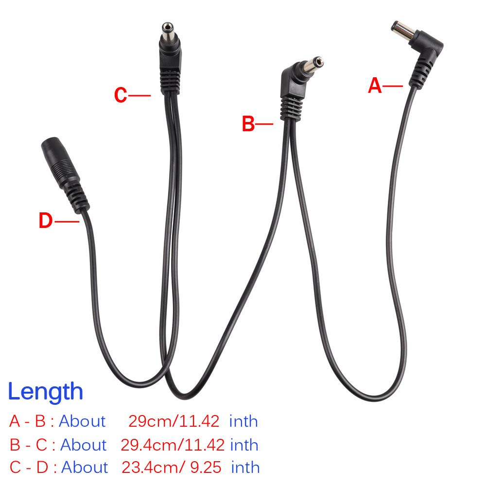 Model Number : 9V 1 To 3 Ways Guitar Pedal Power Supply Cabletype : Guitar Pedal Power Cable 9V Dc Daisy Chain 1 To 3 Ways Guitar Effects Pedal Power Supply Cable Adapter Plug Features Connect Up To 3 Pedals To One Power Supply Spring-Loaded Male Jacks Prevent Disconnection From Power Source Or Pedal Fit For Most Brands Of Guitar Effect Pedals Cable Length 138 Inch (350Mm) Between Plugs Package Includes 1 Piece 3-Ways Power Supply Cable