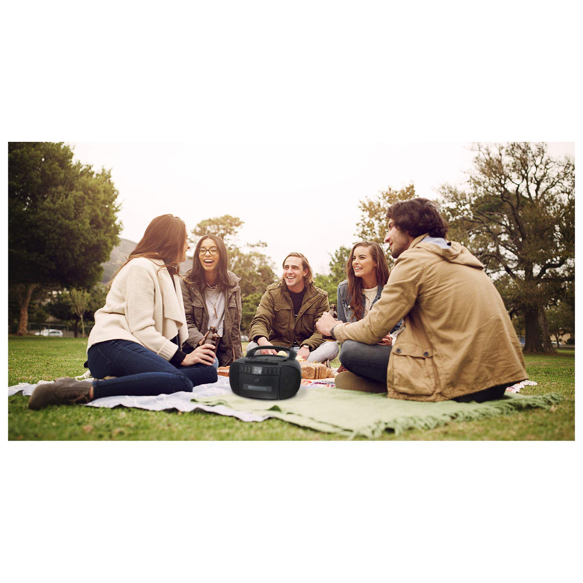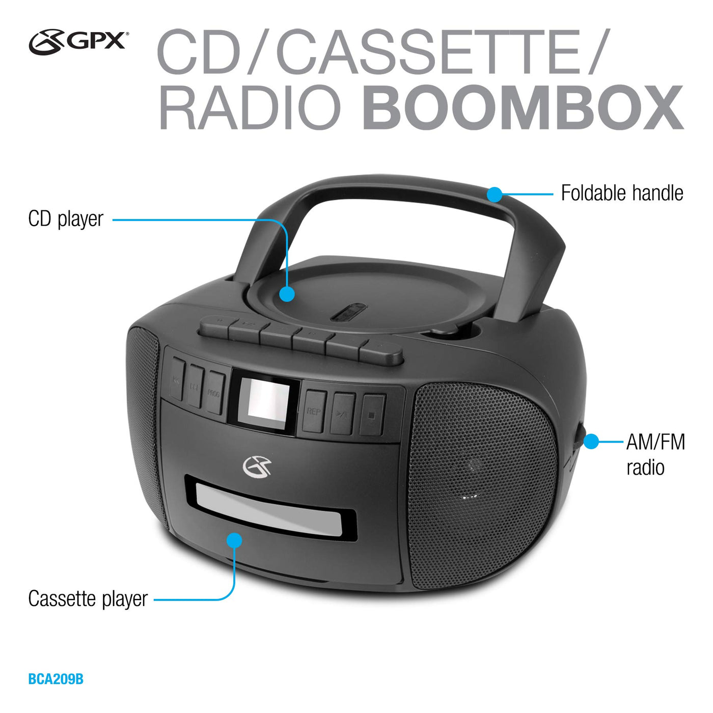 Bring The Good Old Days Into The 21St Century With This Classic Boombox With A Modern Look This Boombox Lets You Listen Through Built-In Speakers To Radio (Amfm), Cd, Cassette, Or Aux In The Simplistic Design Makes It Easy For All Ages To Use And Enjoy With Programmable Tracks And Repeat One Or All Play, And Even Records Radio Or Cd To Cassette Plug It In At Home Or Take Your Music On-The-Go With The Built-In Ac Power Cable Or Dc Batteries (6C, Not Included) And Use The Telescopic Antenna To Get The Best Reception
