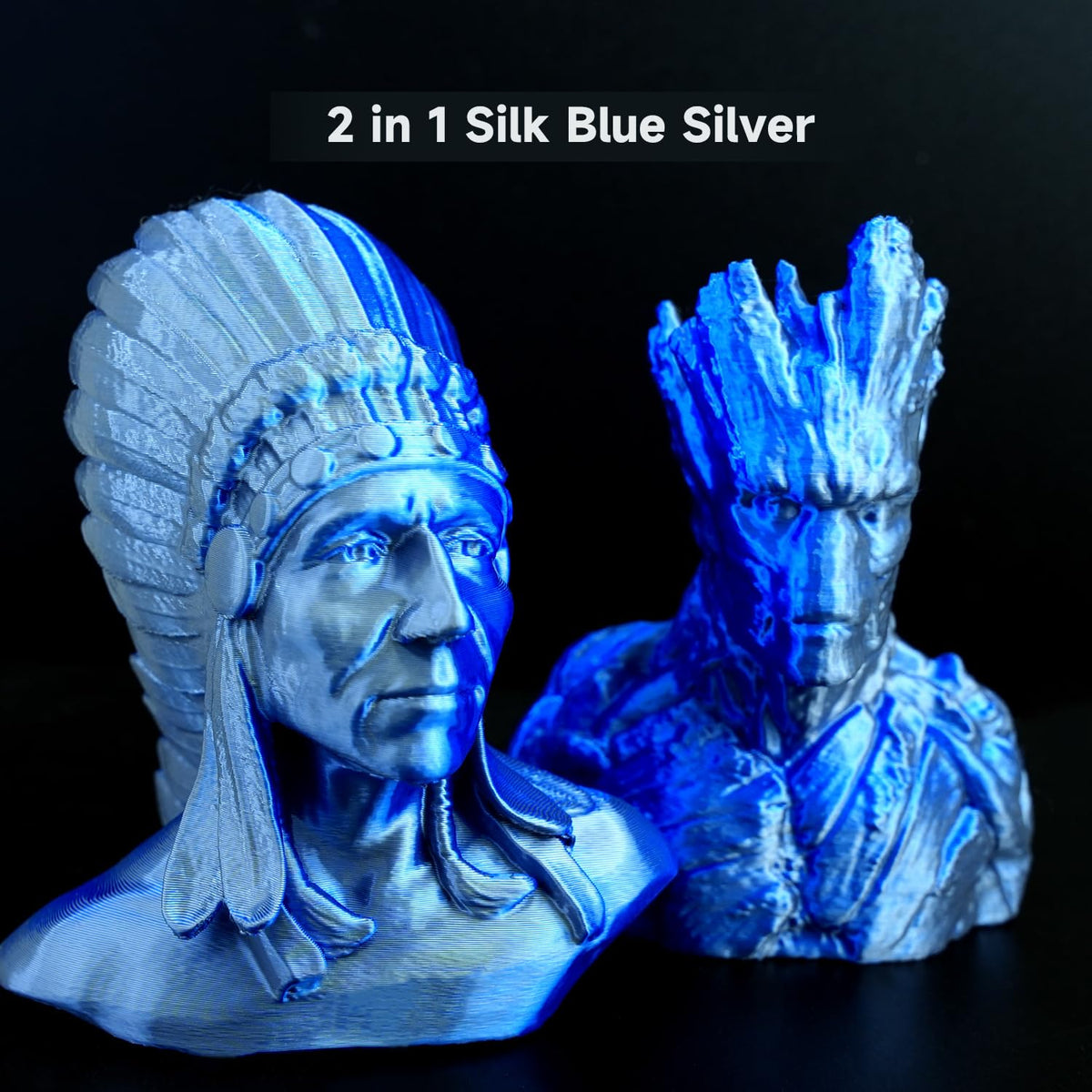 Gratkit Silk Dual Color Pla Filament, Coextrusion Pla Filament 1.75Mm, +/-0.03Mm, 1Kg/Roll, Silk Pla Blue & Silver