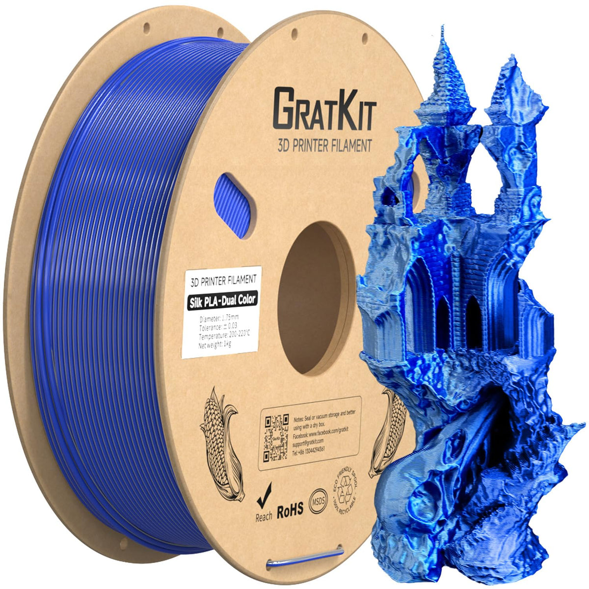 ?Magic Dual-Color Effect?Gratkit Magic Dual Color Pla Has 2 Colors In One Strand Of Filament, Turning Out Amazing Dual Color Change Effect On Prints; | ?Silk Coextrusion Pla?Gratkit Silk Coextrusion Pla Shows Silk Shiny Effect On Printed Stuffs, Makes Prints Looks Charming; | ?Moisture Resistant Pro?Gratkit 3D Printing Filament Went Through A 24-Hour Drying Process In Thermostatic Room Before Sealed Packing. Moreover, It Gets Environmental Glue Attached On Reel To Make Sure The Reel Stands Longer After Unpacking. | ?Dust Free Storage?Gratkit Pla Filament Gets Zipper Bag Included For For Filament Storage After Unpacked To Keep Filament Away From Dust. It Is Also Recommended To Zip Remaining Filament Together With Desiccant Bag In The Zipper Bag. | ?Environmental Packing?Gratkit Pla 3D Printer Filament Uses Recyclable Cardboard Reels For Environmental Purpose.