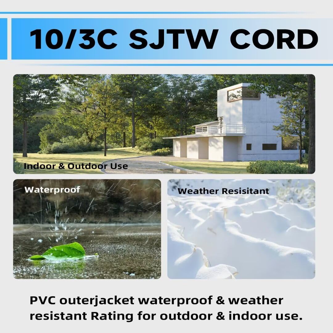 Specifications: Certification: Ul Covering: Pvc Material + Sjtw Thermoplastic Wire Gauge: 10 Awg With 3 Conductors Grounded Amp Rating: 15A Max Voltage Rating: 125V Max Rated Power: 1875 Watts Use:Indoor / Outdoor