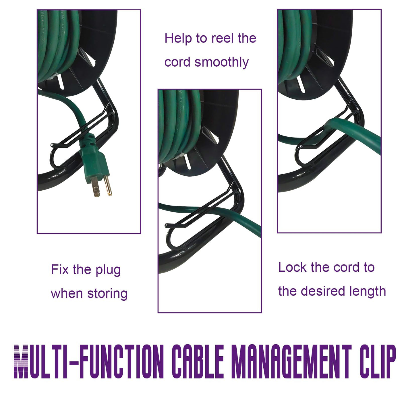 Q: Is the cord reel suitable for different gauge power cords?A: Yes, the cord reel can accommodate 12/3, 14/3, and 16/3 gauge power cords, providing versatility for various electrical needs.