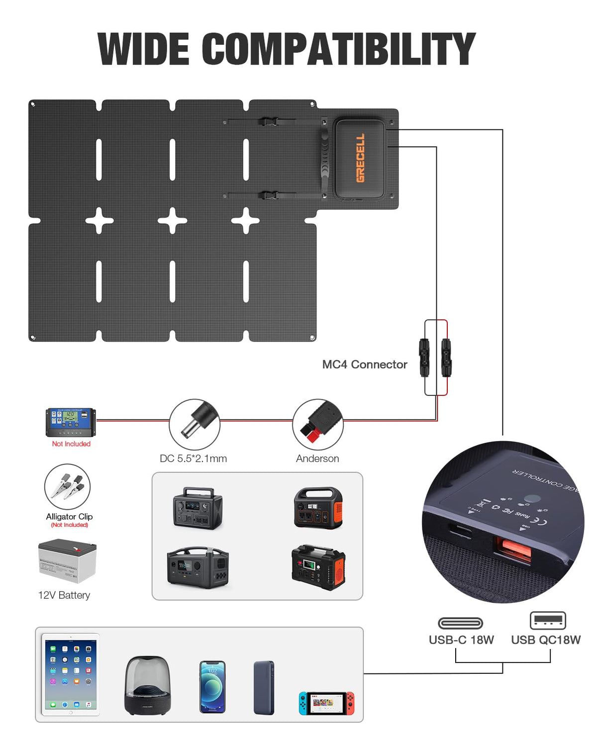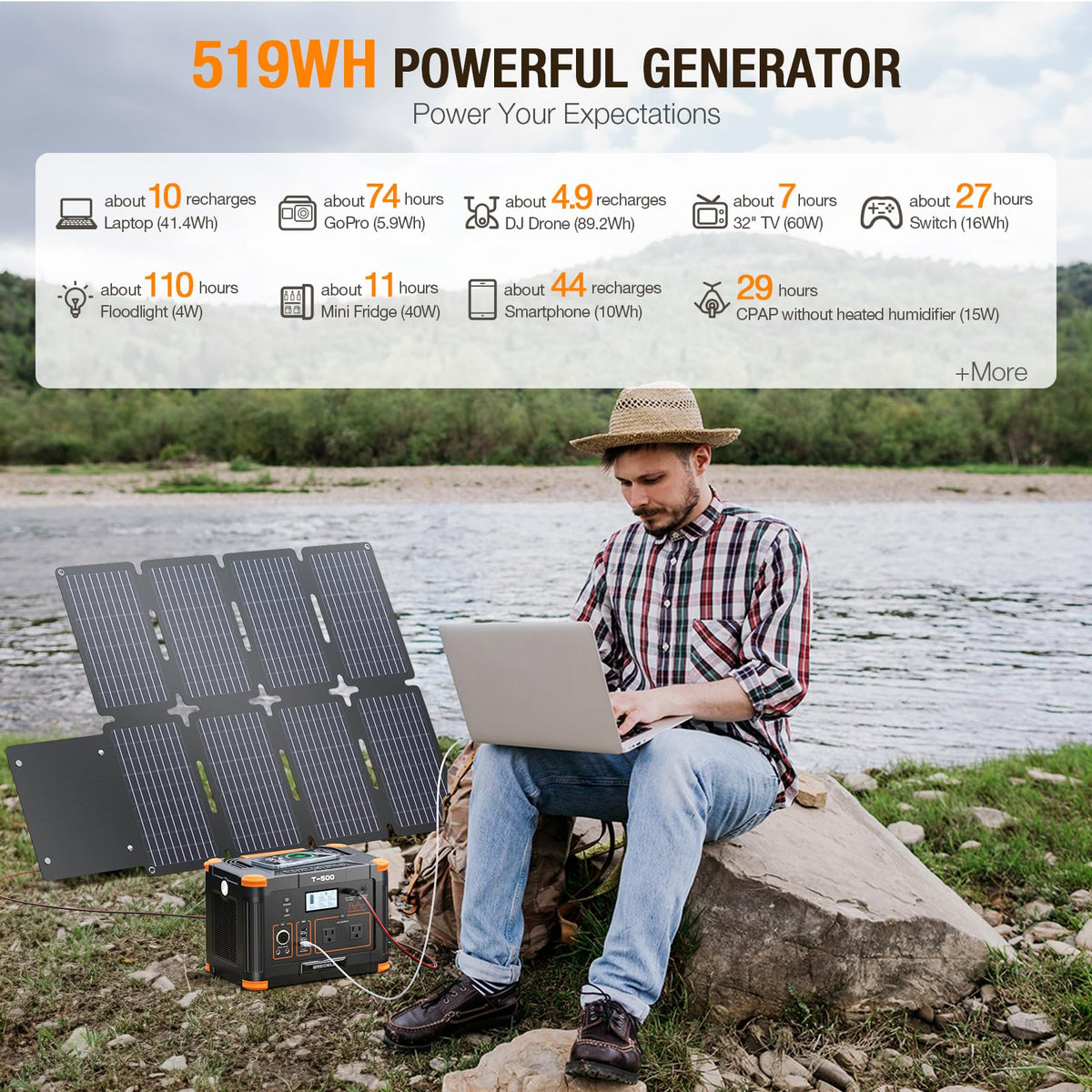 Grecell 519Wh Portable Power Station With 80W Foldable Solar Panel, 500W Solar Generator Backup Battery Power Supply With Portab