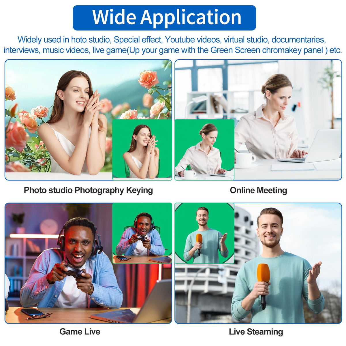 Q: Can this green screen be used for Zoom meetings and live streaming?A: Yes, the green screen backdrop is ideal for Zoom meetings, live streaming, video photography, and professional photo studio shooting, providing a clean background for your virtual interactions.