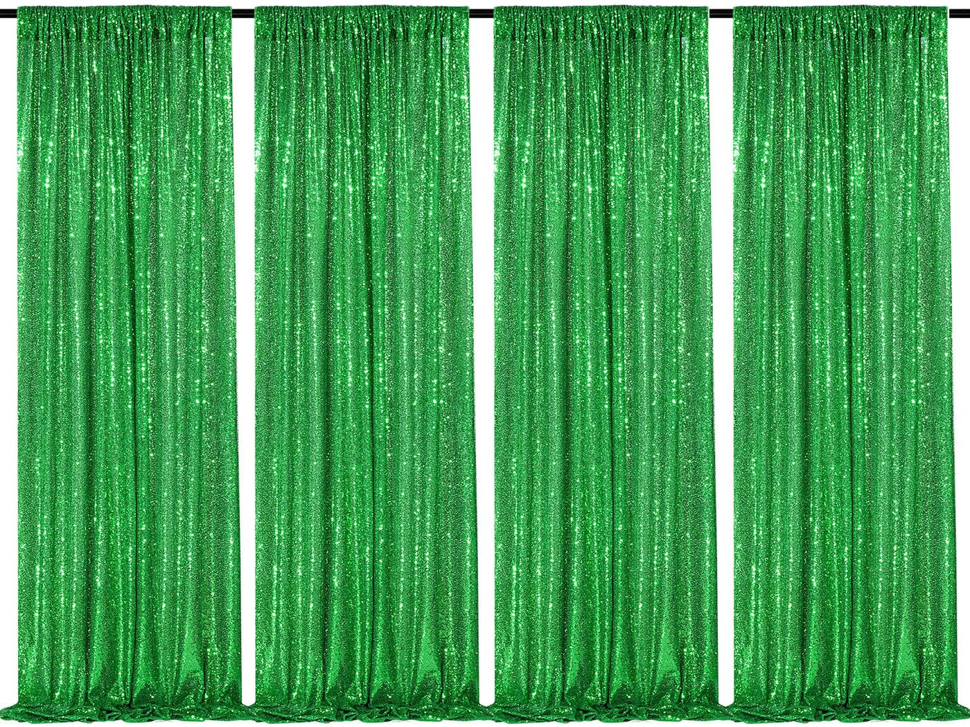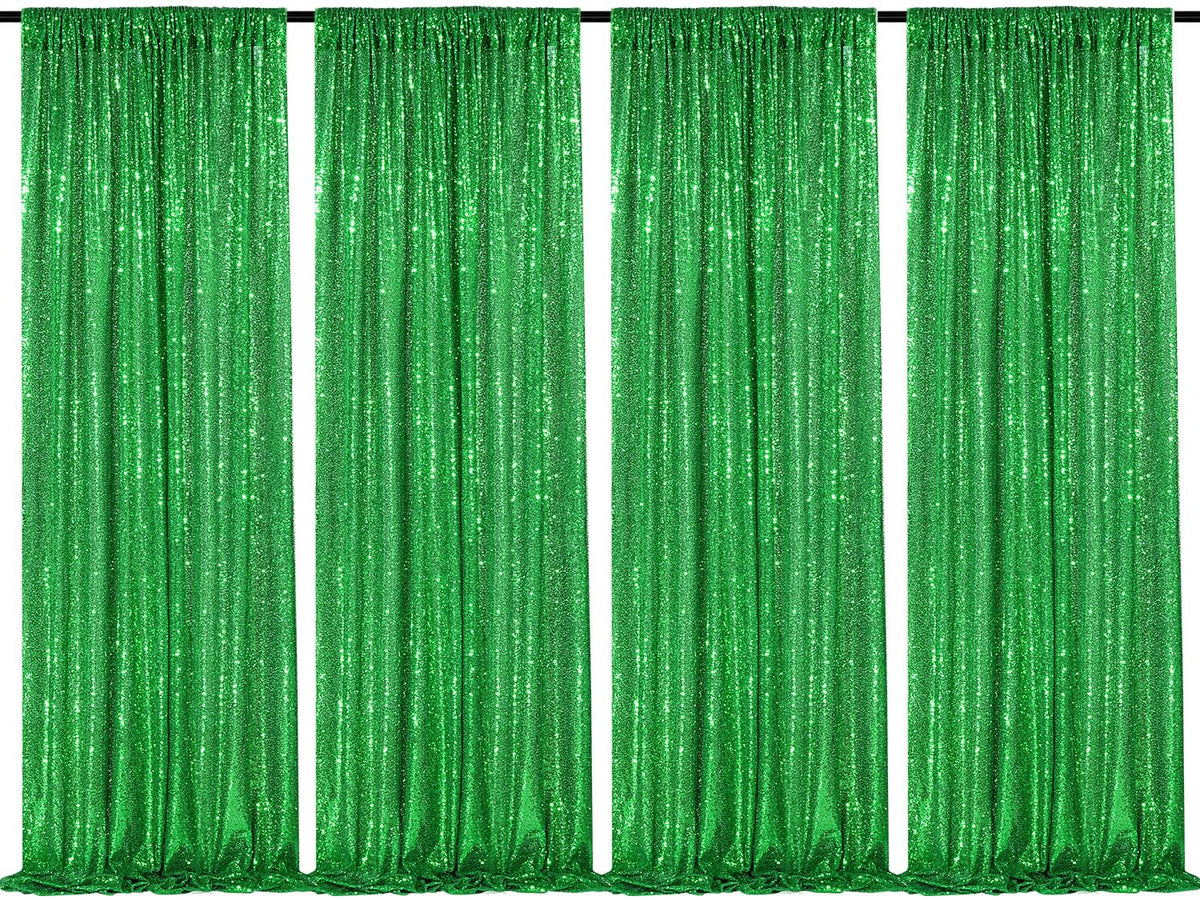 Green Sequin Backdrop 4 Panels 2Ftx8Ft Wedding Photo Backdrop Glitter Birthday Party Decorations Sparkle Background Drapes