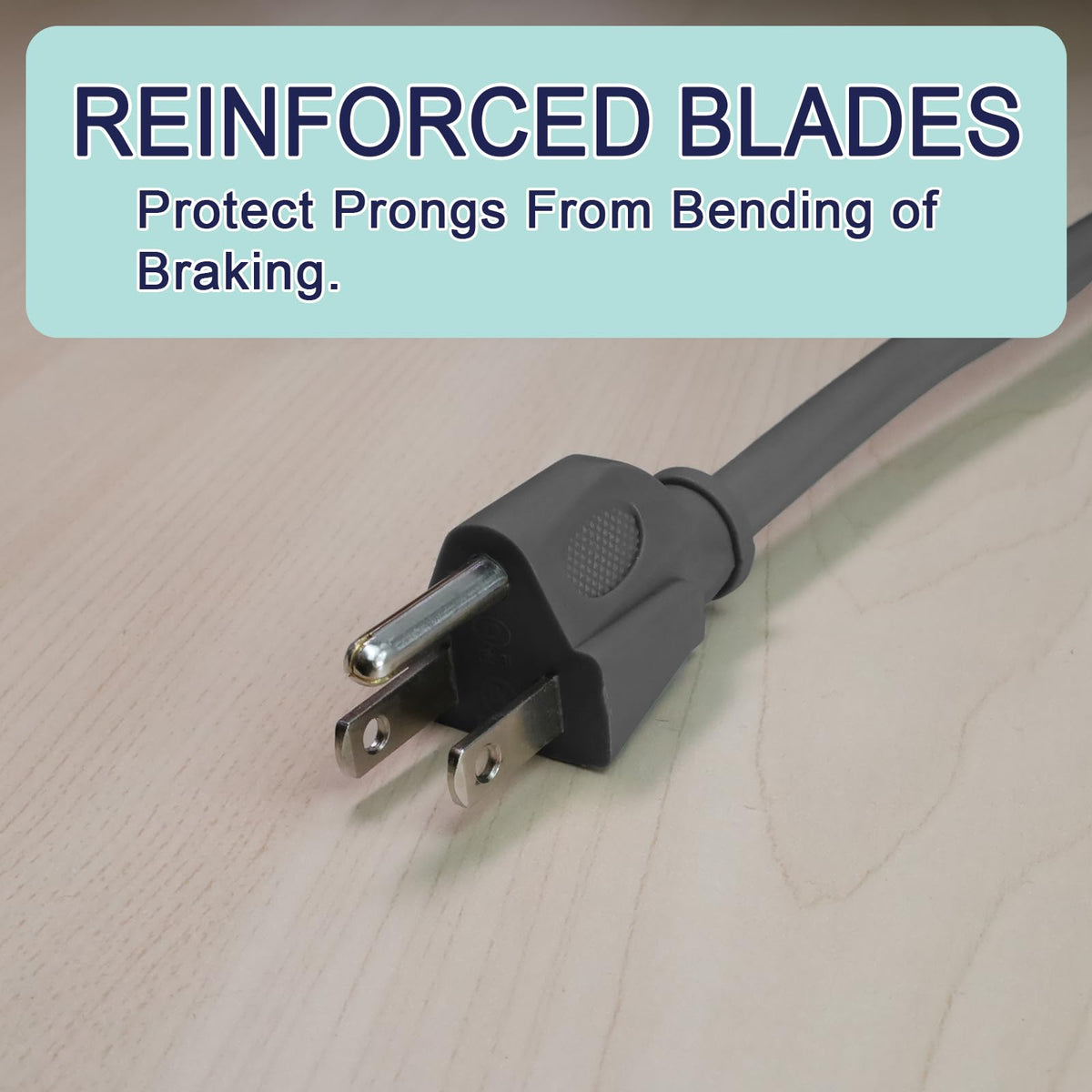 Q: How does the design of this extension cord ensure safety?A: The GreenProsper extension cord features reinforced, nickel-coated blades to prevent bending or breaking, and it is UL-listed to guarantee compliance with safety standards.
