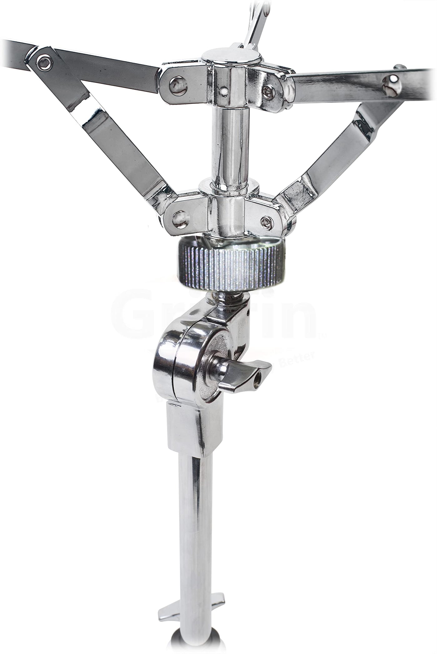 Snare Drum Stand By Griffinif Your Looking For A Quality Medium To Heavy Duty Snare Drum Stand, Look No Further Than Griffin! Made To Hold All Standard Snare Drums, This Snare Stand Allows The Base Height To Adjust, Enabling The Snare To Sit Anywhere From 18 Inches Up To 24 Inches To Conform To Every Drummers Preference. Each Snare Stand Utilizes Double Braced, Chrome Plated Legs For Ultimate Stability And Durability. So Not Only Can This Snare Drum Stand Support Snares, It Can Also Support Small Toms From 8 To 15 Inches, With The Included Upgraded Heavy Duty Circle Metal Adjustment Knob For Ultimate Stability And Durability. Those Double Braced Legs Come With Rubber Feet To Help Prevent Slippage When Youre Pounding Out A Drum Solo. Of Course, Sound Is Important, Too. Thats Why Griffin Incorporates A Vinyl Sleeve Inside The Base Pipe To Cut Down On Unwanted Vibration And Noise. Just Another Reason Why Serious Drummers Turn To Griffin Every Day For Their Drum Hardware Needs.Snare Drum Stand Specifications&Nbsp;Adjustable Height: 16 Inches To 24 Inchescan Also Accommodate Tom Drums With Diameters From 8 Inches To 15 Inchesbase Pipe Diameter: 22 Mmgross Weight: 4 Pounds
