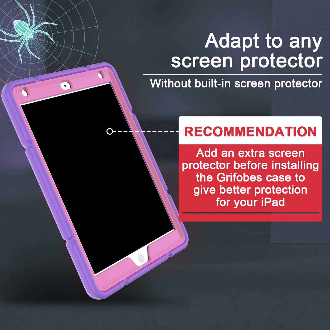 Q: What kind of protection does this case provide?A: The Grifobes case features a shockproof rugged design made from durable hard PC and silicone. It offers a 3-layer full body protection structure, safeguarding your iPad from scratches, accidental drops, bumps, and impacts.