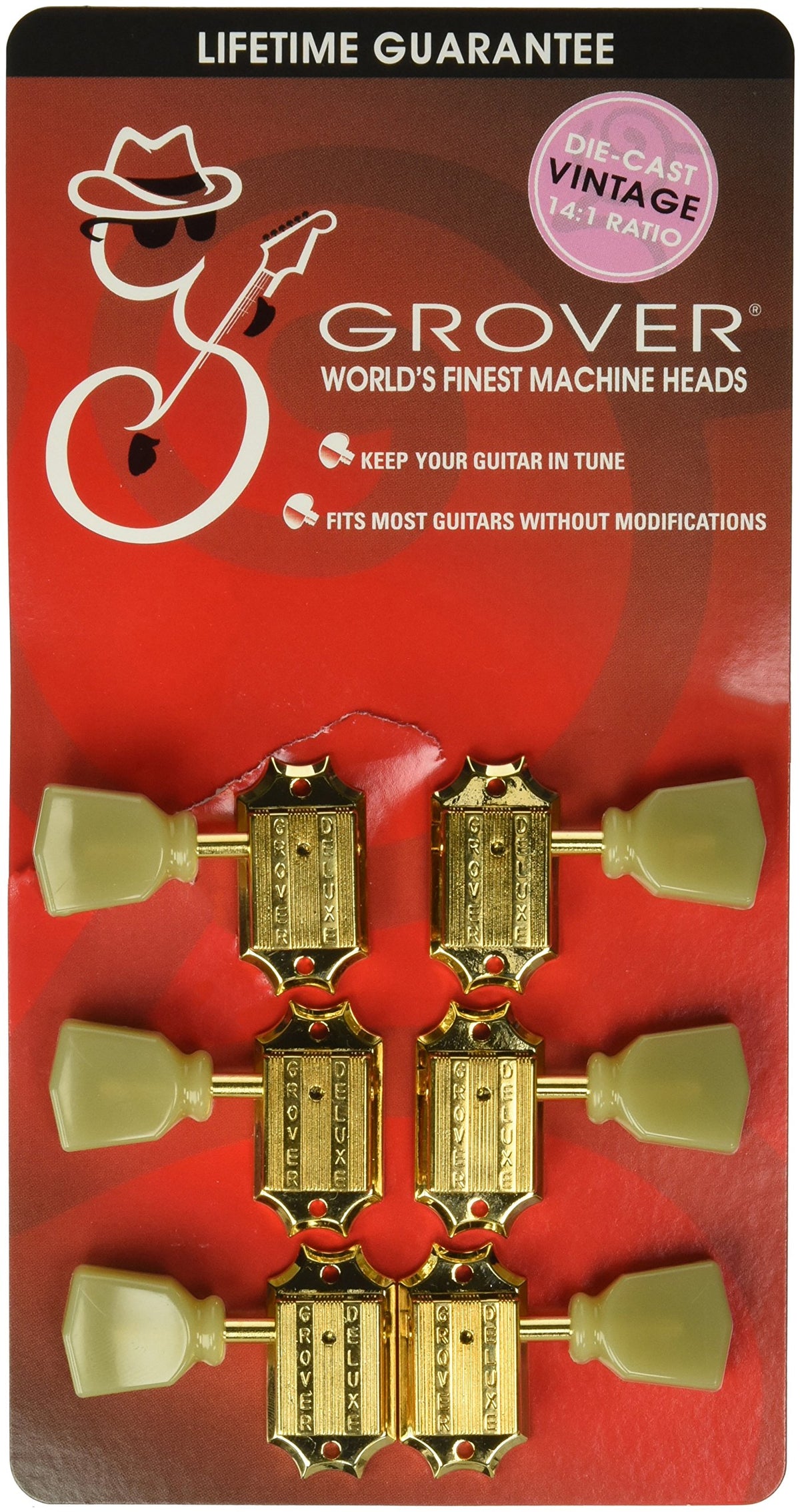 Grover Vintage Deluxe 135G 3X3 Gold Guitar Tunersfeatures A Sturdy Die-Cast Housing With Permanently Lubricated Gears And Ivoroid Keystone Buttons.Features14:1 Ratiorequires 3/8''(10Mm) Peghead Holes.Includes Screw-In Bushings And Mounting Screws.Manufacturer Part Number: 135Gfeatures Grover'S Lifetime Guarantee.