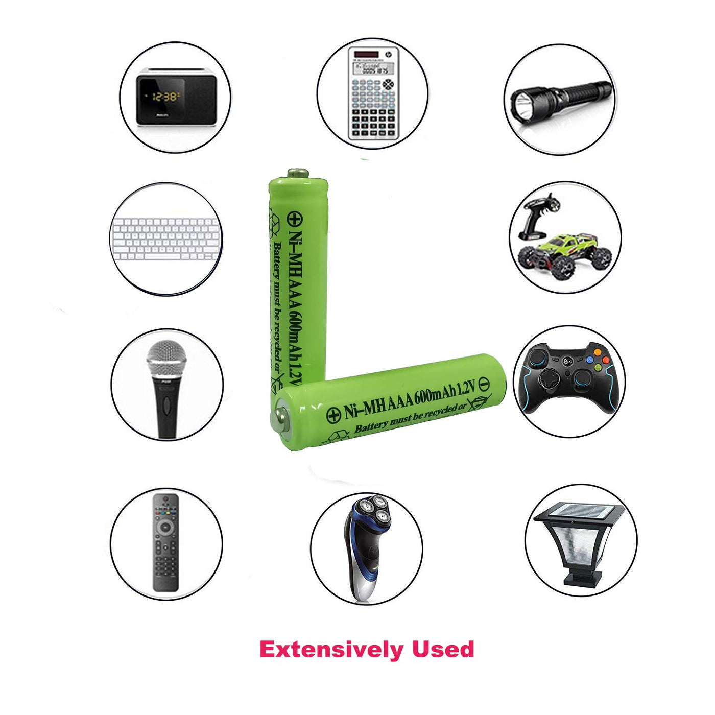 Description: Battery Size:Aaa Capacity: 600Mah Voltage:1.2V Chemistry: Ni-Mh Rechargeable Times: Up To 1000 Times Application:Solar Powered Units / Ac Remote,Tv Remote Cordless Phone