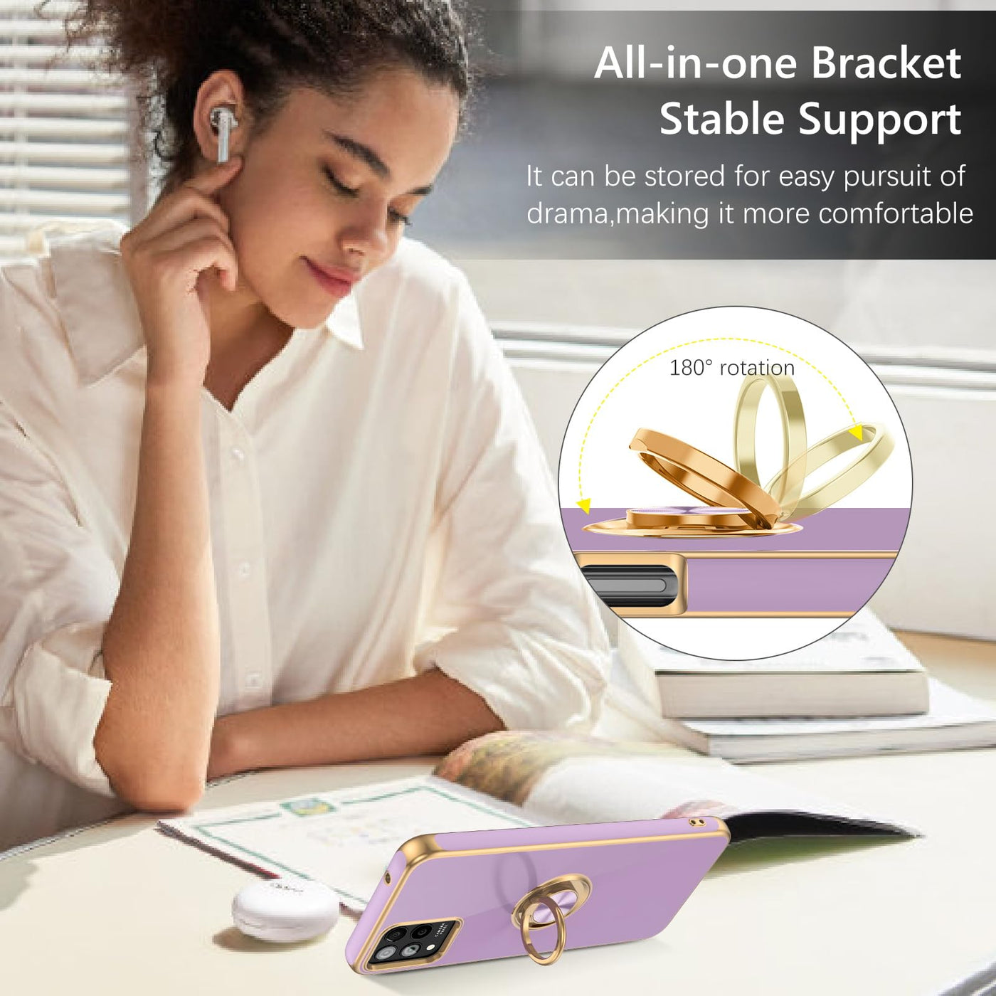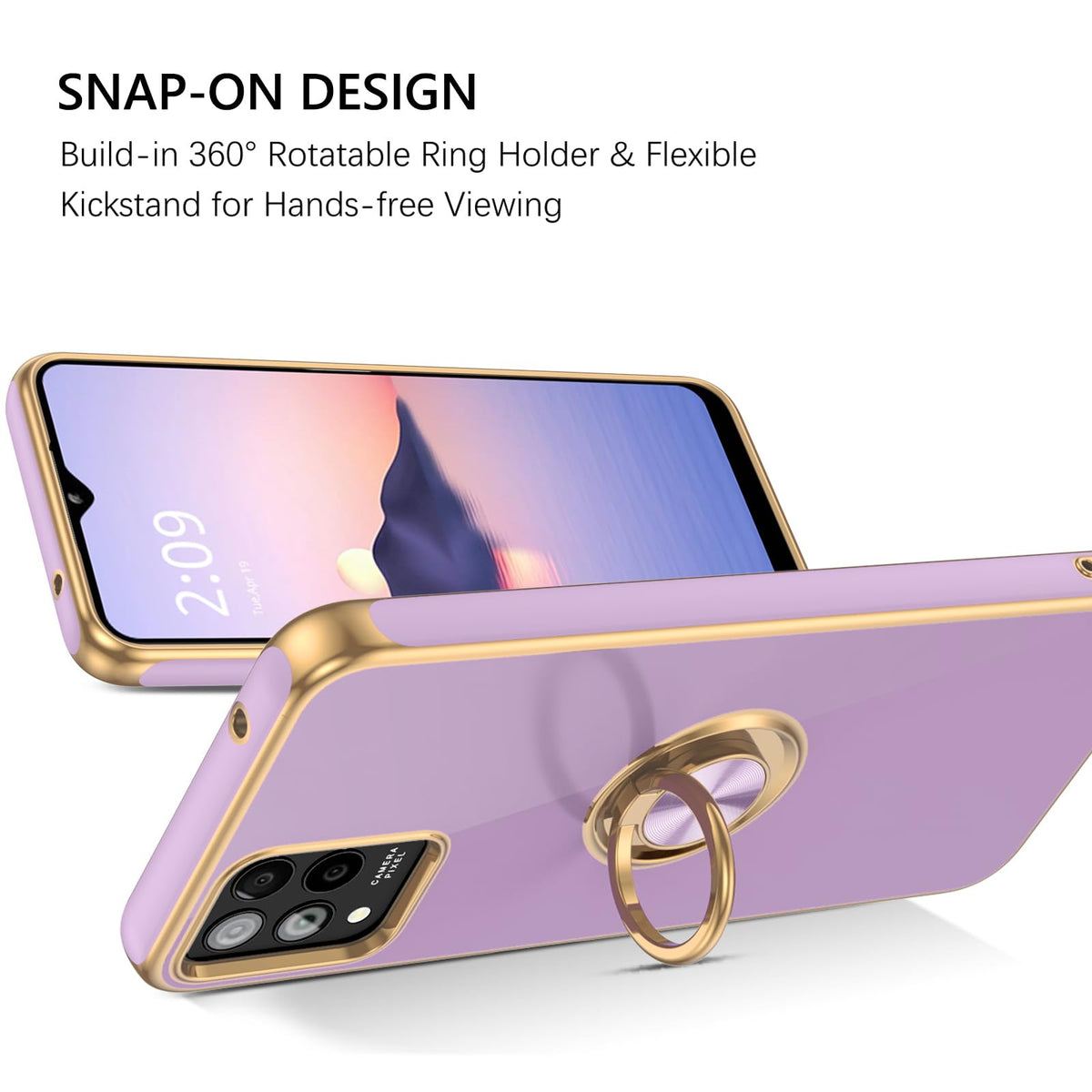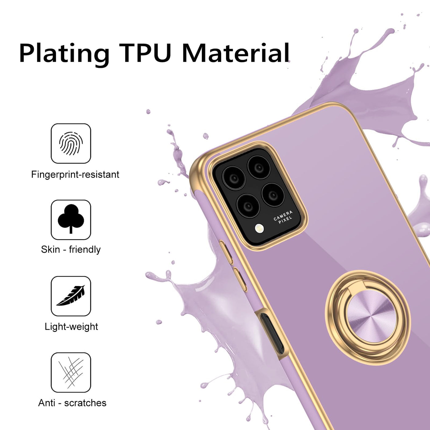 Guagua Compatible With T-Mobile Revvl 6 Pro/6X Pro 5G Case With 360 Ring Kickstand Magnetic Car Mount Supported Soft Tpu Slim Case For Revvl 6 Pro/6X Pro 5G, Light Purple Features: 360 Rotatable Ring Holder Kickstand: Equipped With A Built-In Kickstands, Provide A Great Visual Experience And Convenience For Hands-Free Video, Media Viewing, Facetime Use, Online Books And More. Full Body Protection: Made With Inner Soft Microfiber Cloth Cushion, It Absorbs Impact To Provide Perfect Protection For Your T-Mobile Revvl 6 Pro/6X Pro 5G From Drops, Bumps, Shocks, Nicks And Damages. Soft Tpu Exterior Provides Smooth Skin Texture, Scratch-Resistant Performance And Comfortable Hands Feeling. Slim And Lightweight Design: Slim Case Never Adds Any Bulk To Your Phone, Slides Easily In And Out Of Pockets. Easy To Clean: Any Stain That Gets On The Case Wipes Off Easily With A Damp Rag. Keep Your T-Mobile Revvl 6 Pro/6X Pro 5G Case Always In Clean Status. Larger Cut-Outs: Easy Access To All Buttons, Ports, Camera, Sensors, Speakers, Headphone Jack And Controls Without Removing The Phone Case. Specifications: Compatible Phone Model: For T-Mobile Revvl 6 Pro/6X Pro 6.82 Inch Color: Light Purple Q&A: What'S In The Package? --1X Phone Case Cover For T-Mobile Revvl 6 Pro/6X Pro 5G (2023 Release). Does This T-Mobile Revvl 6 Pro/6X Pro 5G Case Come With A Screen Protector? --No, This Guagua T-Mobile Revvl 6 Pro/6X Pro 5G Case Doesn'T Have A Built In Screen Protector. --Please Note: Case Only, Screen Protector And Other Accessories Are Not Included. Wireless Charging Compatible? --No, This T-Mobile Revvl 6 Pro/6X Pro 5G Case Is Not Compatible With Wireless Charger. --But This T-Mobile Revvl 6 Pro/6X Pro 5G Case Could Support Magnetic Car Mount.