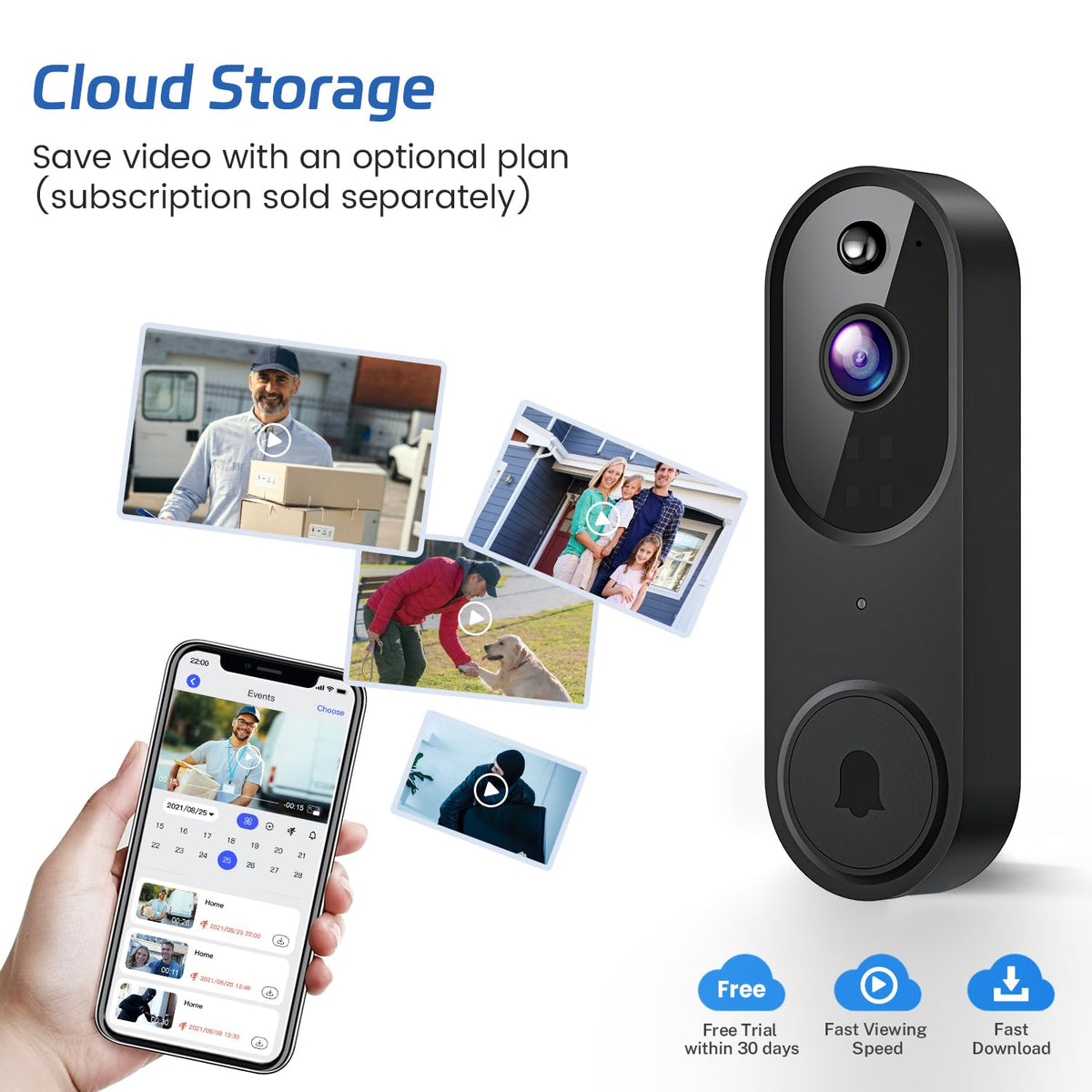1080P Video Doorbell With Ring Chime, Smart Human Detection, Cloud Storage, Live View, 2-Way Audio, Ir Night Vision, Battery Powered, Security Camera Wireless For Indoor/Outdoor Surveillance1080P Video Timbre Con Ring Chime, Detecci N Inteligente De Personas, Almacenamiento En La Nube, Live View, Audio Bidireccional, Visi N Nocturna Ir, Lente Gran Angular, C Mara De Seguridad Inal Mbrica Para Vigilancia Interior/Exterioradvanced Human Recognition Technology: Leverage Ai Capabilities To Distinguish Between Human Presence And Other Moving Objects Like Cars And Pets.Included Indoor Chime: Install The Accompanying Chime Unit Within Your Home, Such As In The Kitchen, Dining Area, Or Terrace. Multiple Chimes Can Be Synced With A Single Doorbell For Added Convenience.Optional Aes-128 Cloud Storage: Choose An Optional Subscription For Aes 128-Bit Encrypted Cloud Storage (Sold Separately) And Enjoy Video Recording, Playback, And Sharing.Real-Time Notifications: Stay Informed With Instant Alerts To Your Mobile Device When The Doorbell Is Rung Or Motion Is Sensed, Keeping You In The Loop With Front Door Activities.2.4Ghz Wi-Fi Compatibility: The Doorbell Is Tailored For 2.4Ghz Wi-Fi Networks To Ensure A Steady And Quick Connection (5Ghz Wi-Fi Not Supported).
