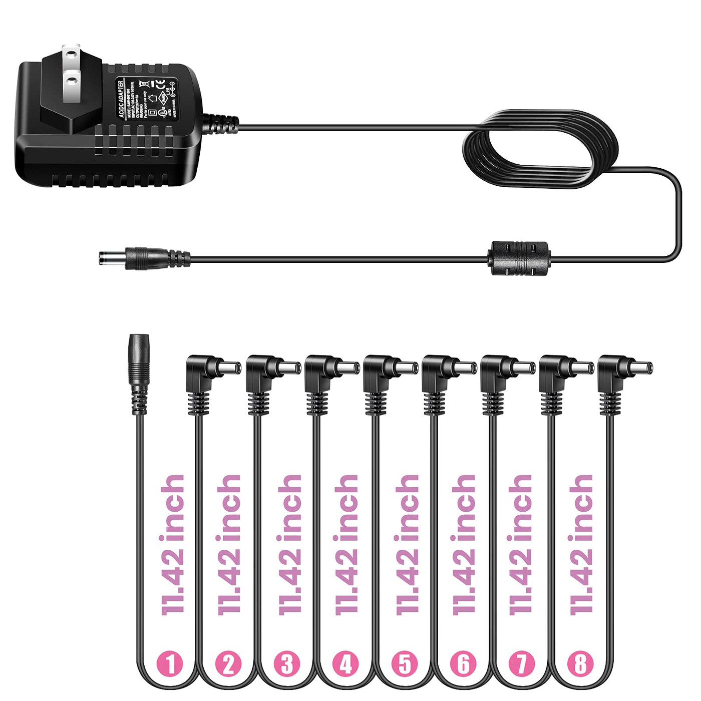 Guitar Effect Pedal Power Supply Adapter With 8 Way Daisy Chain Cables Fit For 9V Dc 1A (1000Ma)