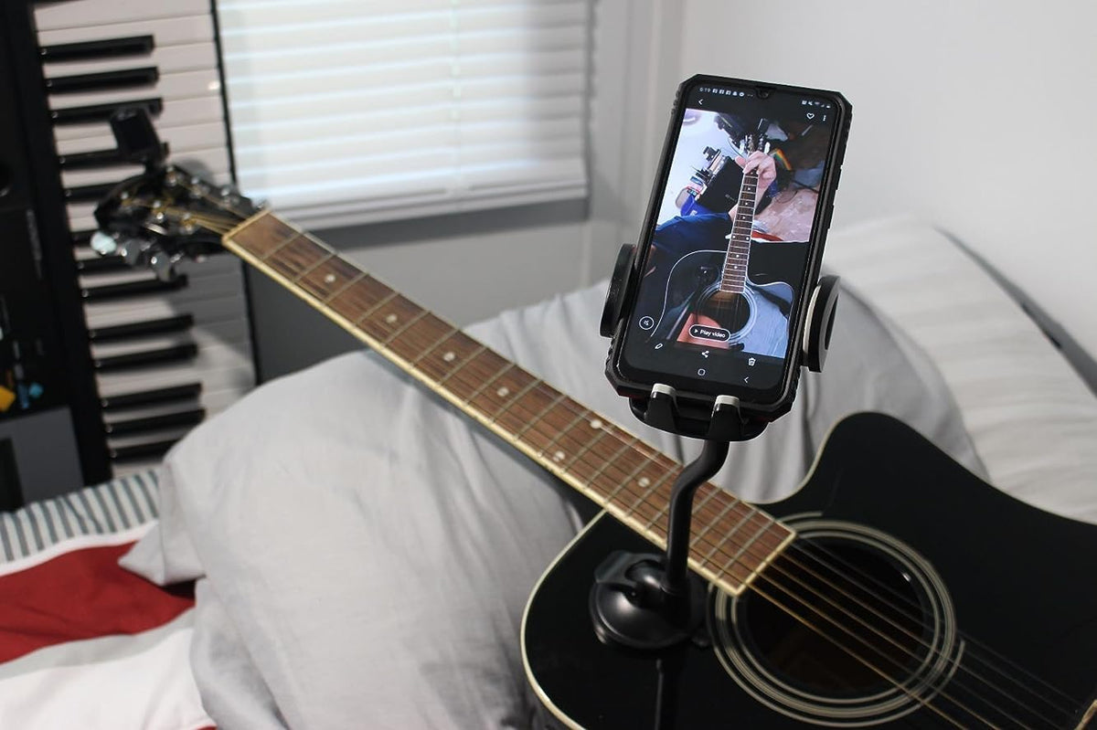 Guitar Phone Holder, Phone Holder For Guitar Gooseneck Mount, Allicaver Removable Suction Cup Phone Holder For Acoustic Electric