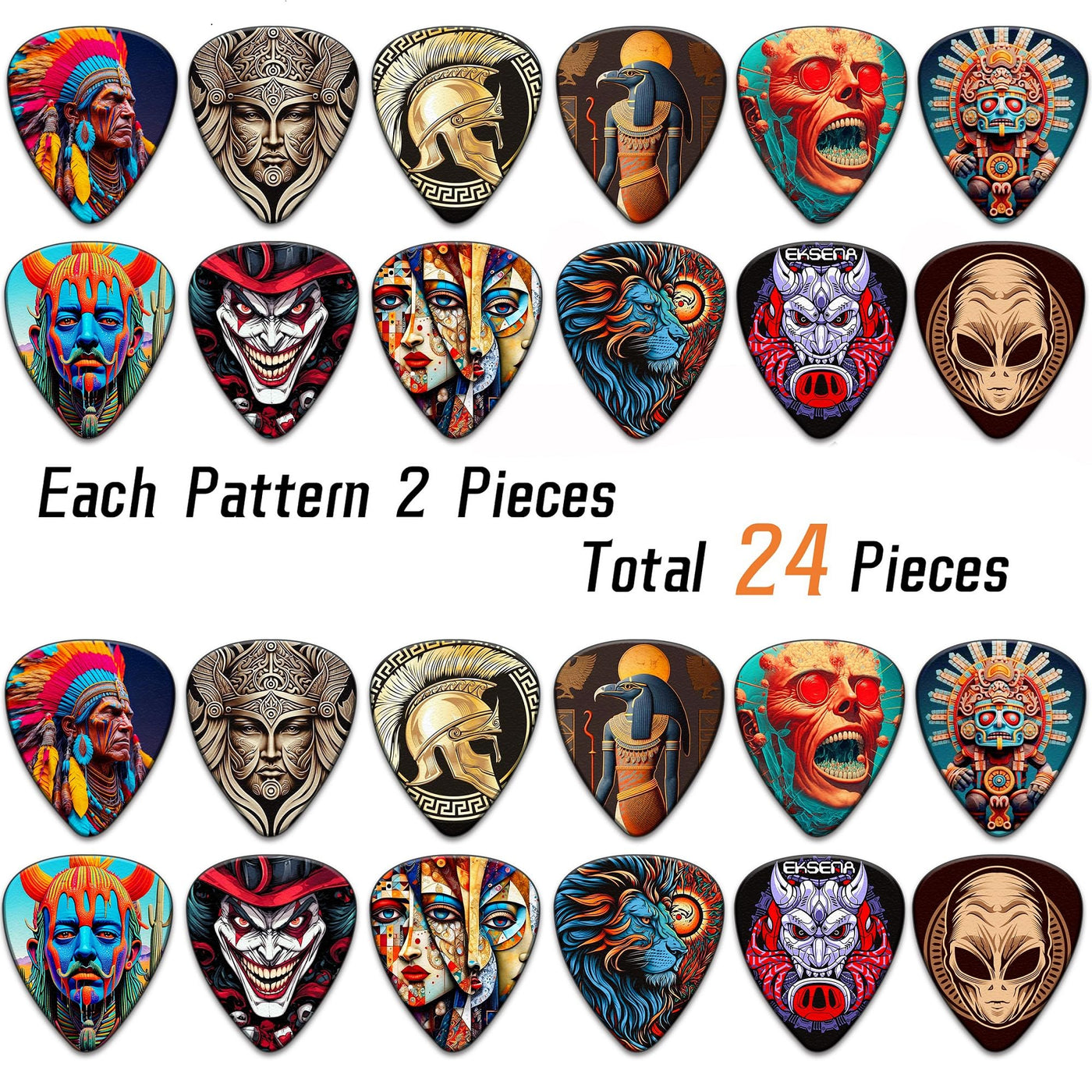 Guitar Picks,24 Pack Guitar Pick Medium Thickness,Guitar Picks Variety Pack For Electric Acoustic Guitar, Bass, Ukulele (Mix 11)