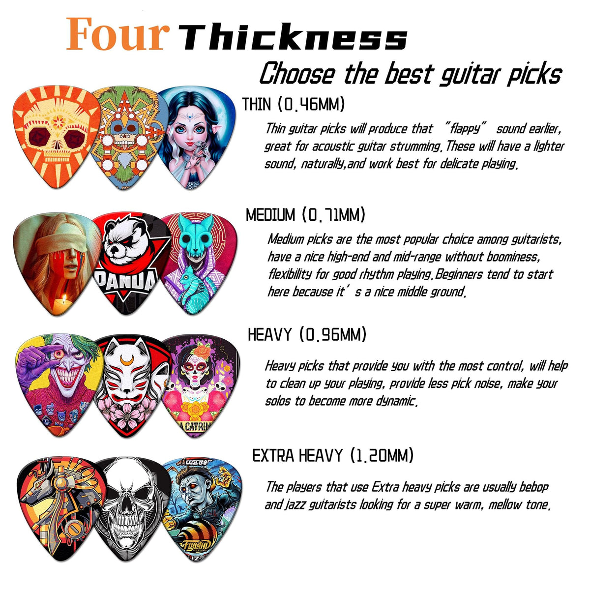Guitar Picks 24 Pack Unique Artistic Celluloid Guitar Picks & Bass Picks Guitar Picks Made From Celluloid, The Best Material For Guitar Pics, Which Providing Good Elasticity, Firmness, And A Clear And Pleasant Tone.Unique Guitar Picks Smooth Edge Makes Playing Comfortable Without Hurting Fingers Or Hands. Exquisite Printing Makes The Pattern Hard To Shedding. Unique Design Embodies Your Unique Taste, Makes You The Most Unique Guitarist. Funny Guitar Picks Featuring 24 Unique Artistic Designs: - Cool Art And Music Combination - Upgrade Your Musical Performance And Appearance As An Artist! - Strum Your Guitar With Style! - Source Of Endless Inspirationpersonalized Guitar Picks With Tin Box---Cool Guitar Accessories Gifts For Guitarists - Wonderful Gifts For Musicians And Art Lovers - For Beginners And Professional Guitarists - Ideal Gift For Acoustic, Electric And Bass Guitar Players - Cool Gift For Birthdays, Christmas And Special Occasions Wonderful Guitar Accessories Set: - 24 X Guitar Picks (Each Design Is 2 Packs) - 1 X Tin Box