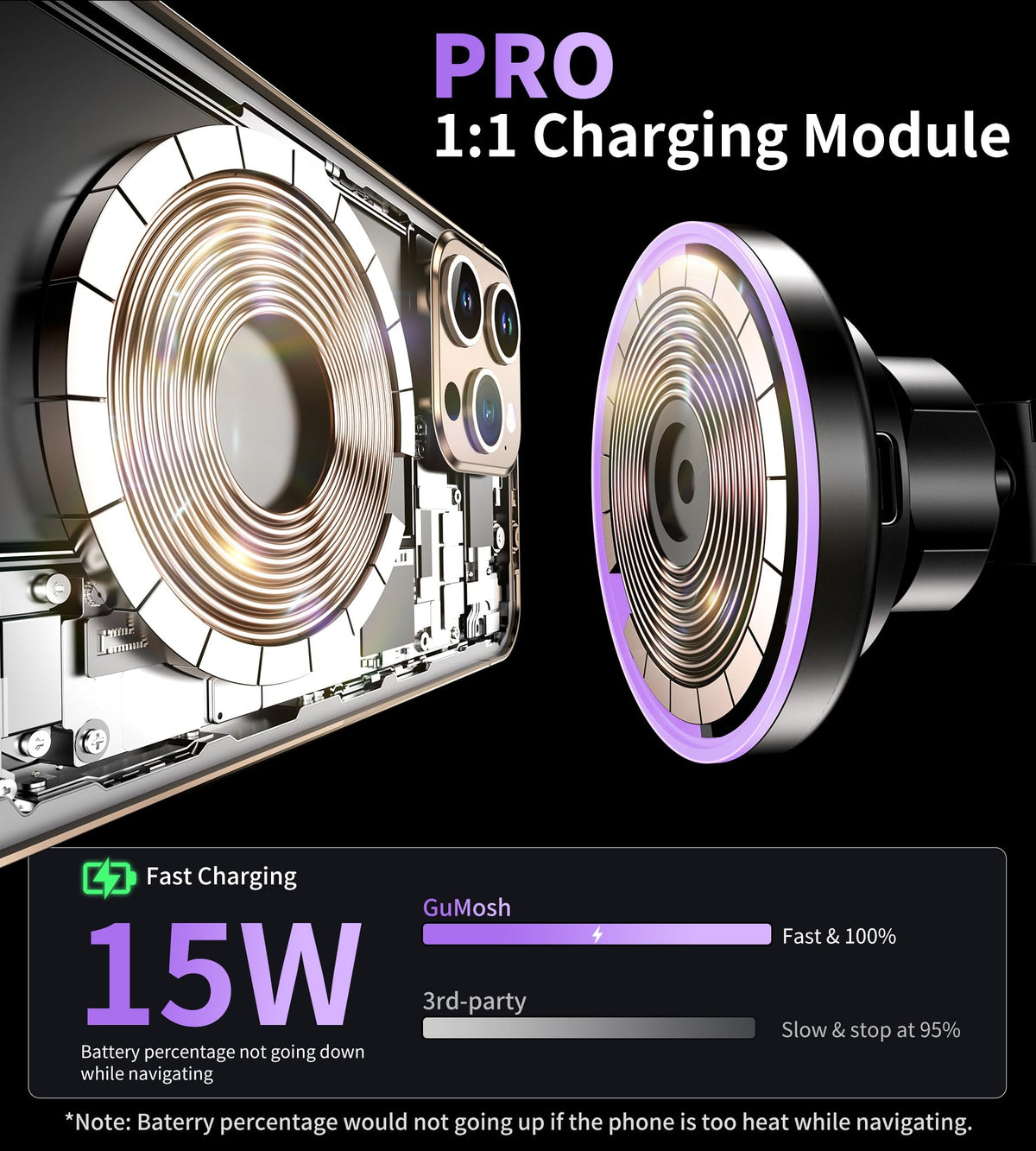 Gumosh For Magsafe Car Mount Charger Dash Vent Windshield Wireless Car Charger With Led Light, Strong Magnetic Phone Holder For