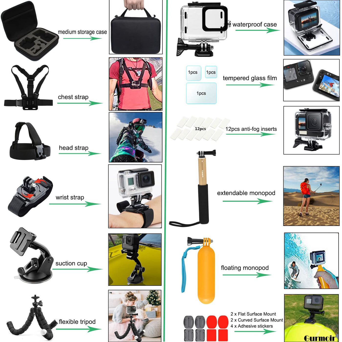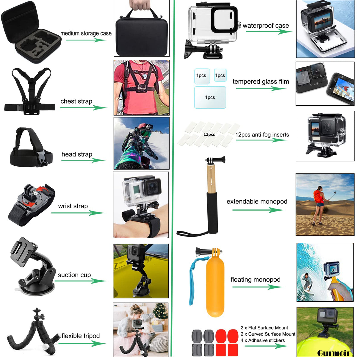 Gurmoir Accessory Pack For Go Pro 12 11 10 9 Hero Black, Full Essential Accessories Kit With Waterproof Protective Housing Case Compatible With Gopro Hero 12 Hero 11 Hero 10 Hero 9 Camera(Dt06)