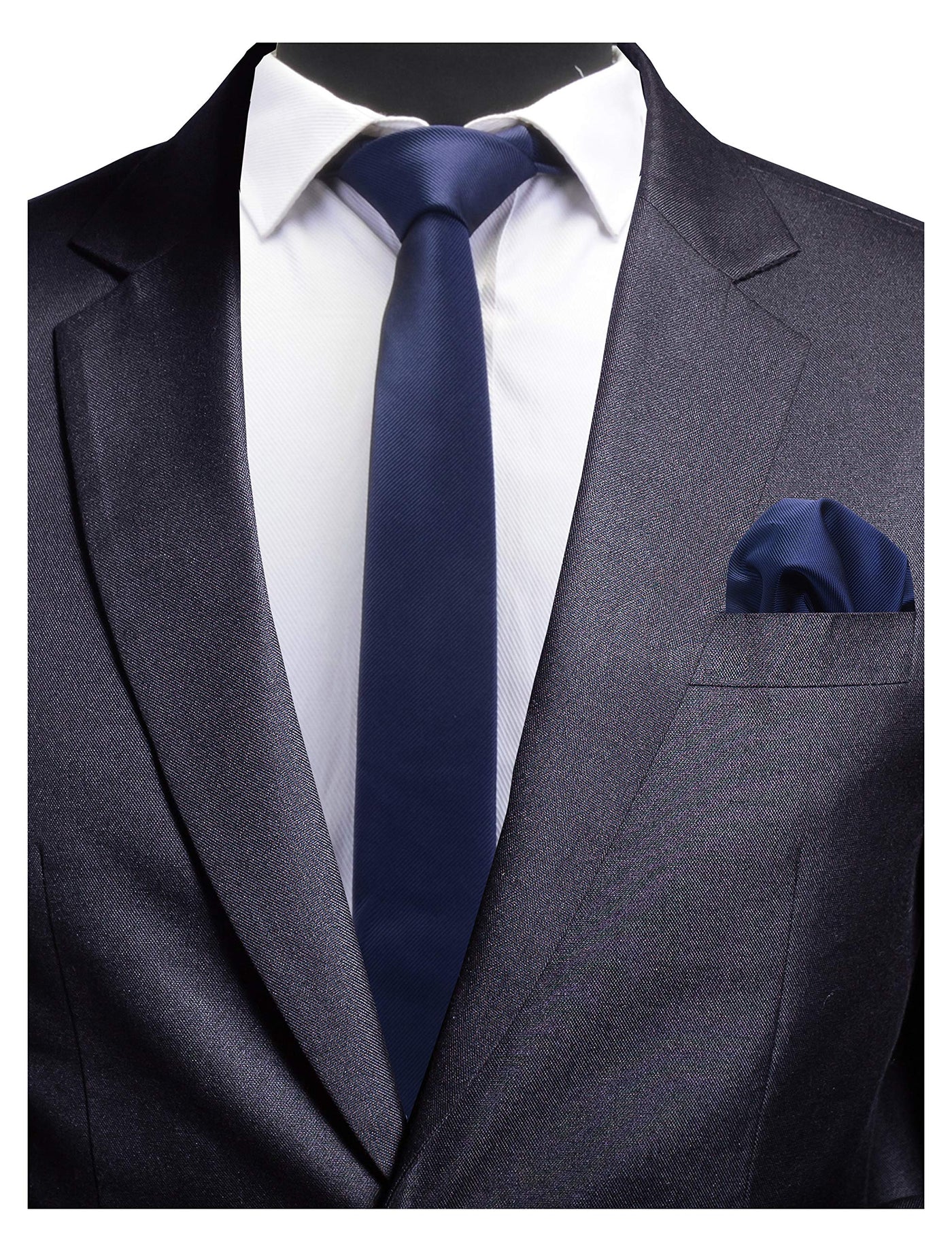 Gusleson 24 Slim Necktie And Handkerchief Set For Men Solid Navy Skinny Tie (0754 03)