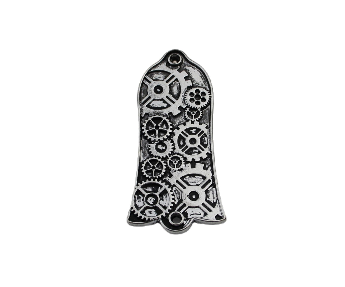 Guyker 1 Pcs Guitar Head Cover 2 Holes, Zinc Alloy Guitar Truss Rod Cover For Lp Style Guitar Accessories Parts, Gear Pattern Ja