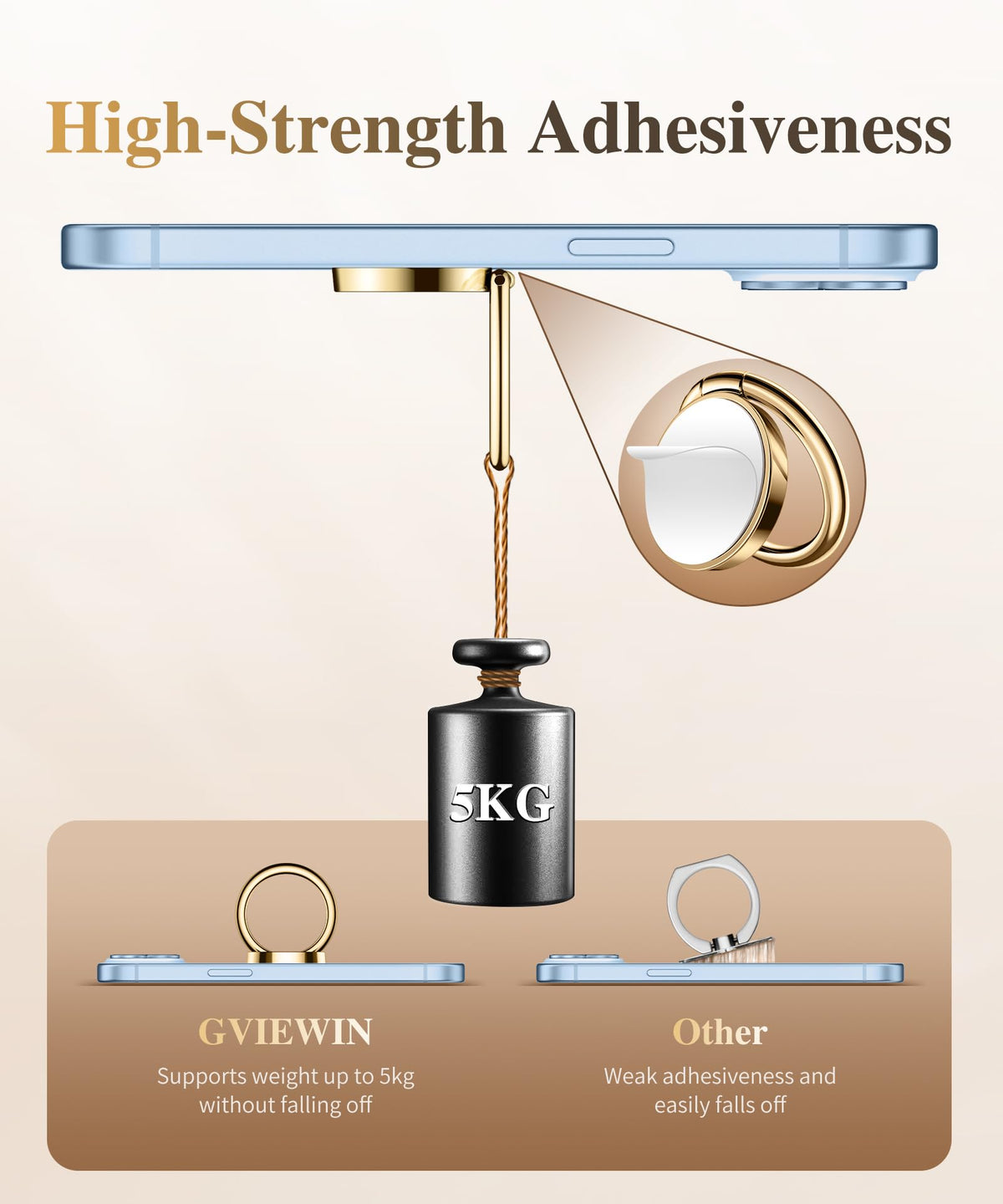 Q: What materials are used in the construction of this phone ring holder?A: The GVIEWIN Marble Cell Phone Ring Holder is made from high-quality zinc alloy and sturdy stainless steel, ensuring durability and a long-lasting grip.