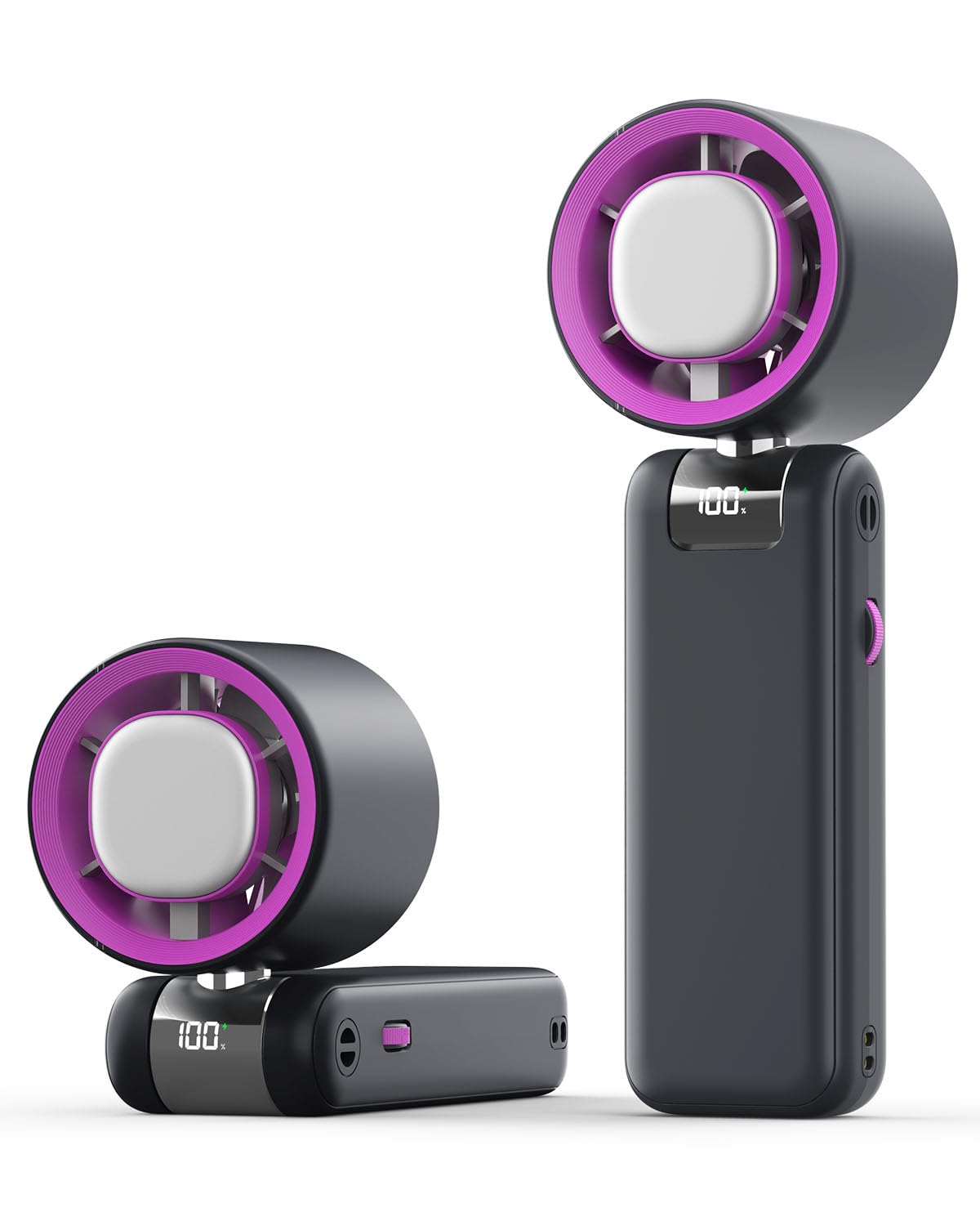 Stay cool with this handheld fan featuring a brushless motor for strong, even airflow. With 100 adjustable speed settings, its perfect for work, travel, or outdoor fun. The foldable design easily converts to a desktop fan and includes a lanyard for hands-free use. Plus, it allows you to enjoy all-day cooling with a built-in 4000mAh battery. A sleek, practical gift for anyone who is on the move.