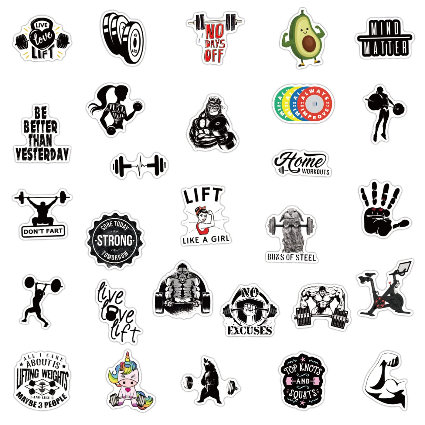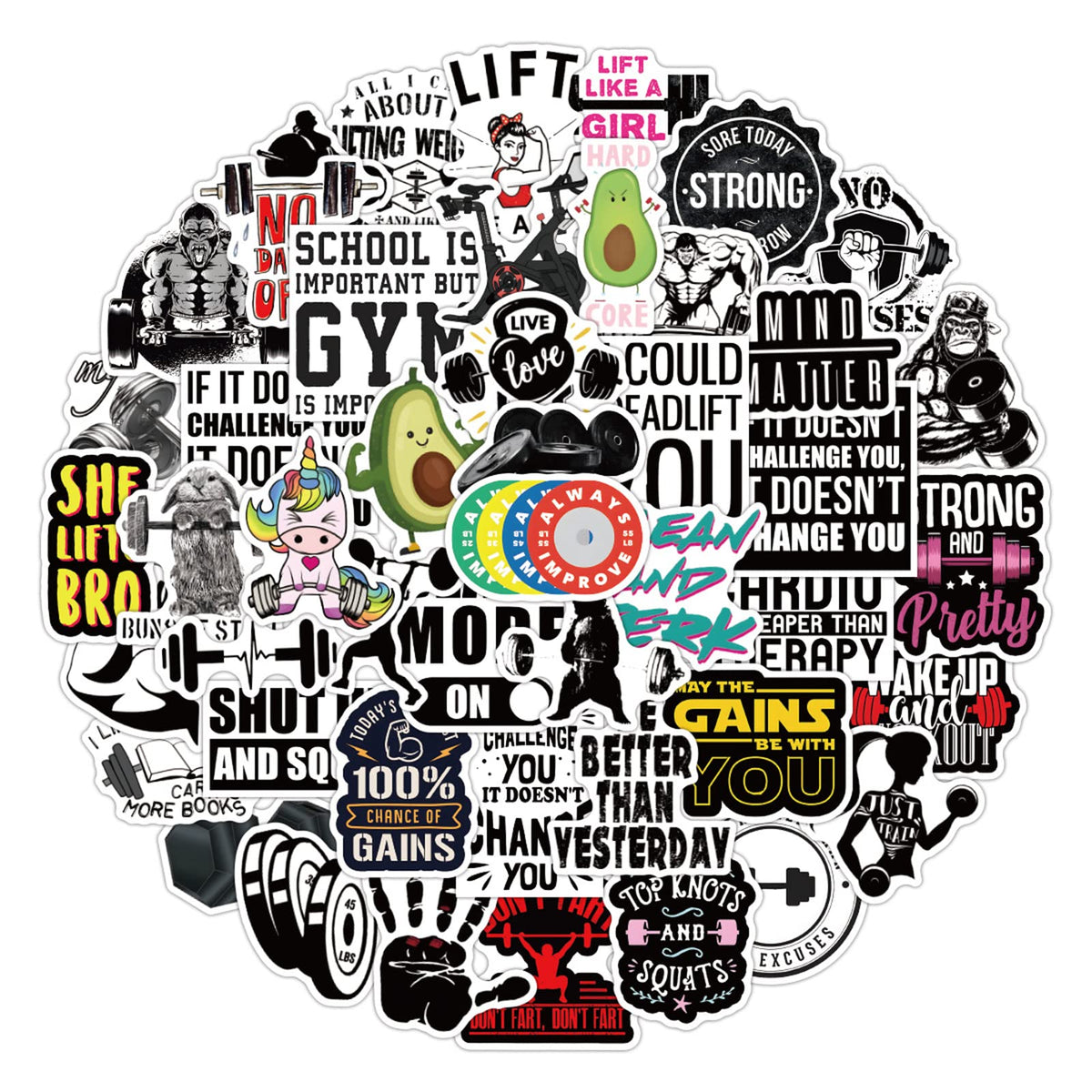 There Is No Random Delivery And Duplicates. Theme : Workout Stickers. Material : Waterproof Pvc. Size : About 2-4 Inch Of Each Design. Weight: 30G Quantity : 50Pcs/Pack. ?Usage The Stickers Can Be Used For Laptops, Kindle, Phone, Pencil Case, Water Bottle, Notebook, Diary,Skateboards, Luggage, Cars, Bumpers, Bikes, Motorcycle, Snowboard, Ps4, Xbox One, Switch Etc. How To Use : Get Your Stickers, Clean The Surface, Sticker On Wherever You Like, Then Use Your Imagination To Create Works!