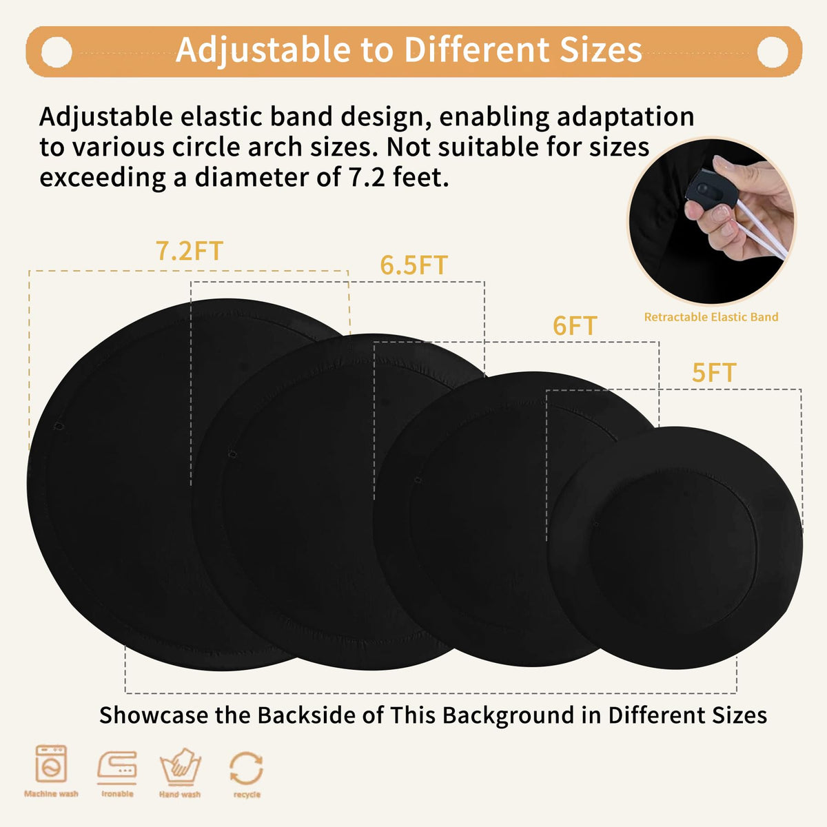Haefoo 7.2Ft Black Round Backdrop Cover For 5 To 7.2Ft Circle Arch Stand Adjustable Wrinkle Free Circle Backdrop Cover For Bir