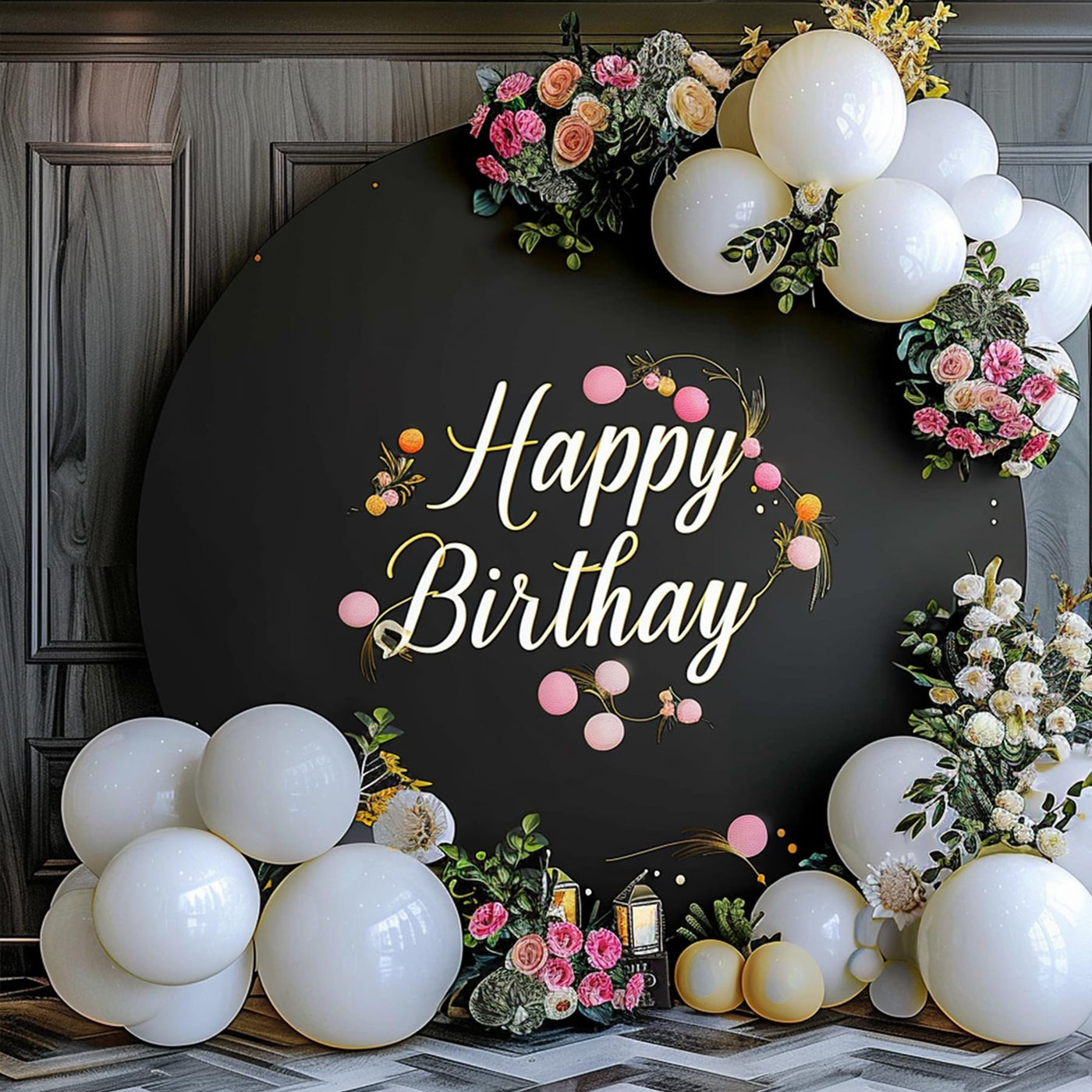 Haefoo 7.2Ft Black Round Backdrop Cover For 5 To 7.2Ft Circle Arch Stand - Adjustable Wrinkle Free Circle Backdrop Cover For Birthday, Wedding, Baby Shower Photography Party Background Decor